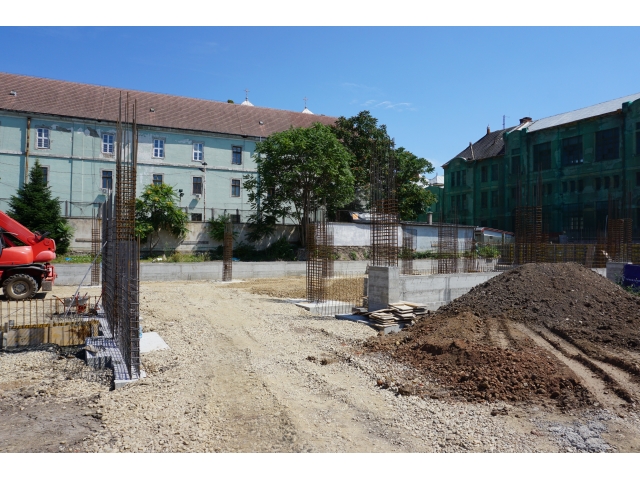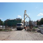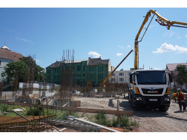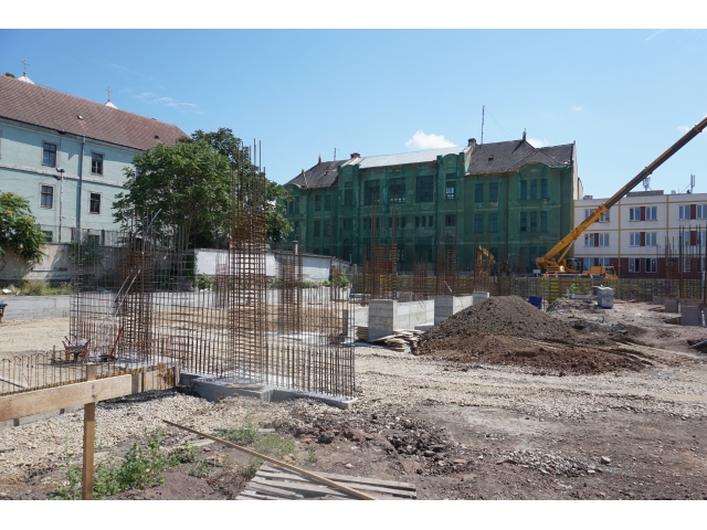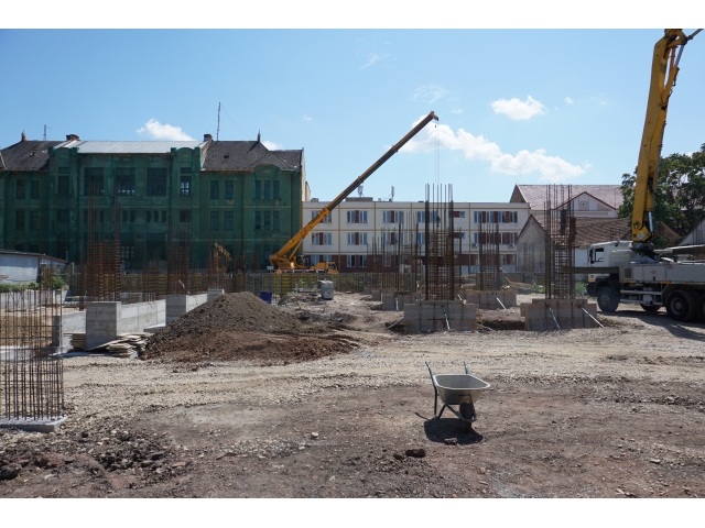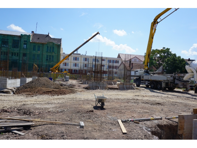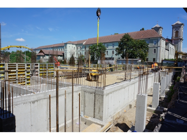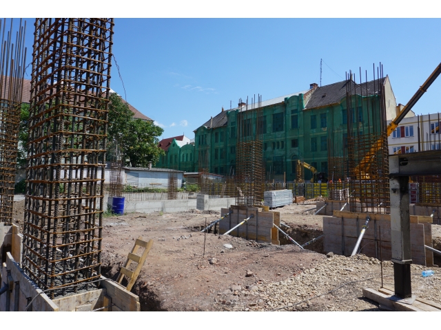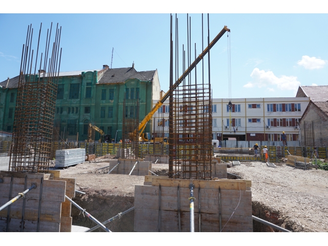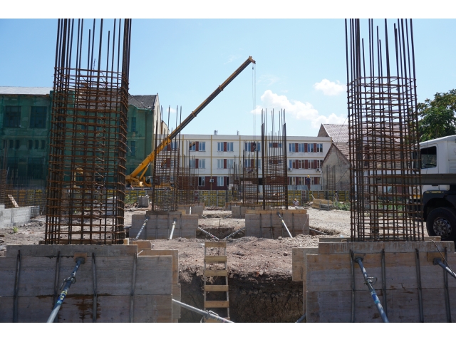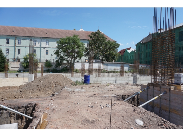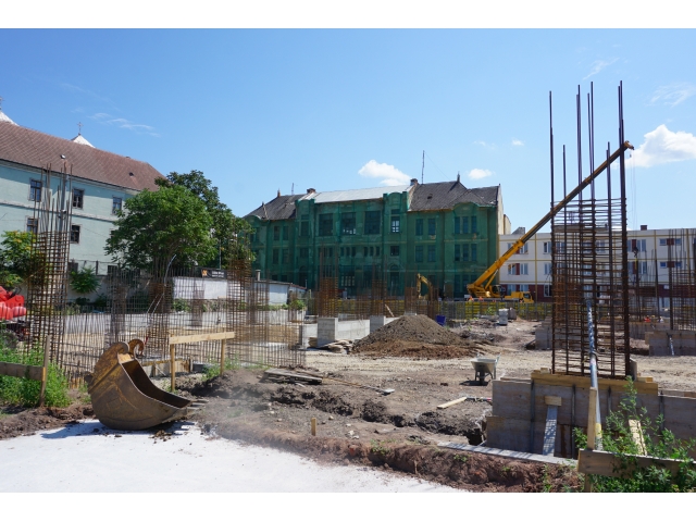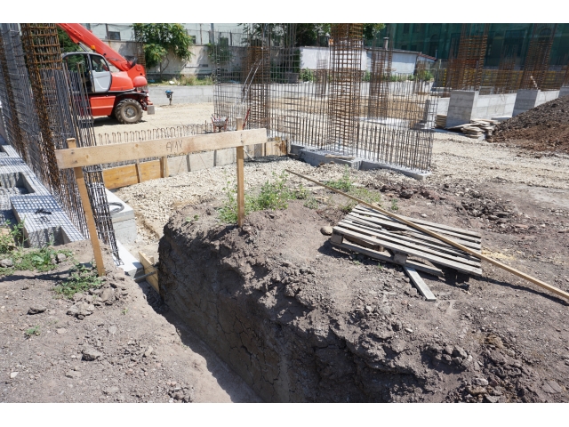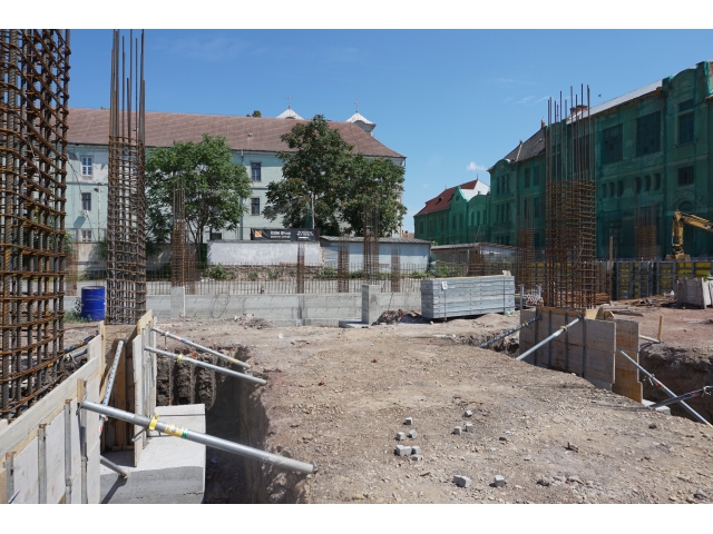 După demolările ce s-au impus în zonă și organizarea de șantier, au fost trasate săpături pentru realizarea fundațiilor. În prezent, a fost turnată integral fundația pentru corpul de birouri, iar cea aferentă parcării a fost turnată în proporție de 60%. Tot în această perioadă, au fost deviate rețelele de termoficare din zonă.