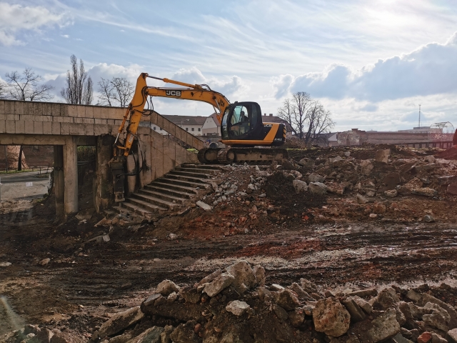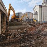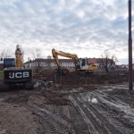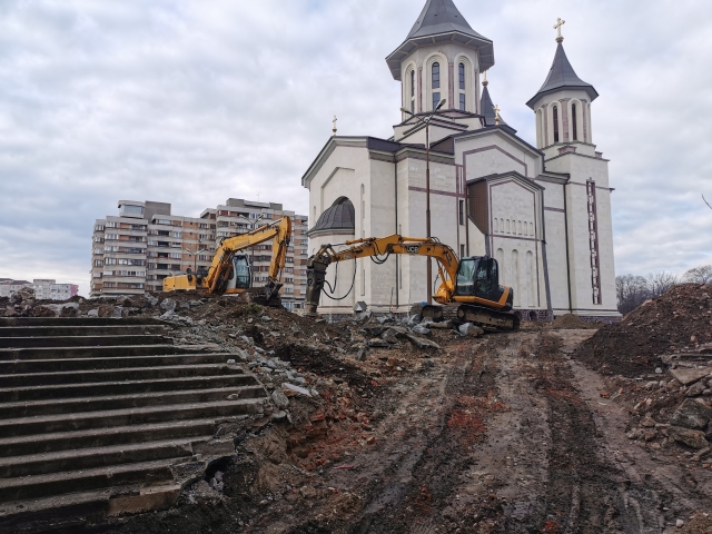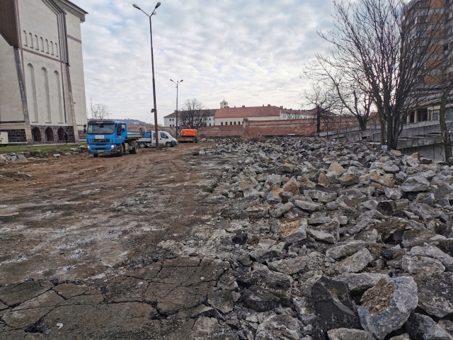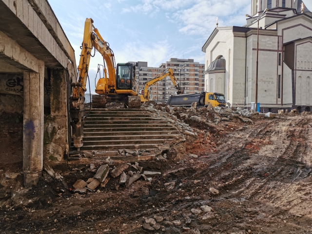 După rezolvarea tuturor aspectelor care țin de organizarea propriu-zisă a șantierului s-au început excavațiile din zona nordică și nord-estică, decopertarea zonei placate cu beton și relocarea rețelelor de utilități. Excavațiile vor continua până la cota de fundare, după care vor începe lucrările la structura parcării subterane.