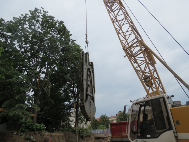 Inginerul constructor Iulian Corboveanu, reprezentant al firmei Terratest Geotehnic S.A., a prezentat în detaliu stadiul actual al procesului tehologic în această prima fază: „În acest moment se realizează grinda de ghidaj pentru săpătură. Apoi, se începe efectiv săpătura în urma unui panotaj realizat prin proiect. O dată cu înaintarea excavației, se introduce și lichidul bentonitic, care are rolul de a susține pereții excavației, pentru ca aceștia să nu se surpe, să nu creeze caverne. Apoi, în urma atingerii cotei de realizare a pereților mulați prevăzuți în proiect, se trece la introducerea în foraj a două carcase. Aici avem carcasă tip C4. După aceea, se introduce tubul de betonare până în fundul forajului și se începe betonarea de jos în sus. Bentonita, prin presiunea creată de beton, este trimisă în denisipator și apoi e recuperată într-un alt bazin. Deja se poate vedea cum se betonează cu pâlnia. Întărirea betonului se realizează în 4-6 ore, apoi se reia aceeași execuție la un alt panou, întreaga procedură fiind secvențională. Pentru cei care nu știu, bentonita este un liant de argilă foarte fină amestecată cu apă, care creează o suspensie cu o densitate mai mare decât densitatea apei, astfel încât introducerea în foraj creează o presiune hidrostatică asupra peretelui, ceea ce înseamnă că infiltrațiile de apă în timpul forajului sunt foarte mici, astfel încât se pot estompa în funcție de dozajul densității bentonitei.”