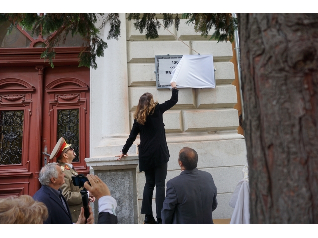 A urmat apoi dezvelirea unei plăci comemorative la 100 de ani de la înființarea liceului, placă amplasată pe fațada de la intrarea în colegiu, pe partea dreaptă.