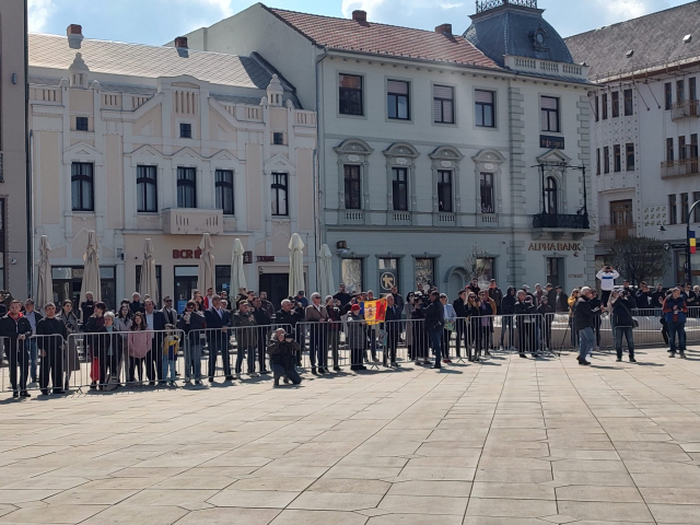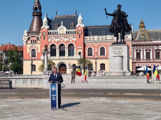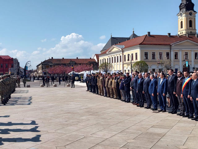Sute de orădeni s-au adunat azi, 20 aprilie, în Piața Unirii, la statuia Regelui Ferdinand, iar apoi la statuia generalului Traian Moșoiu pentru a participa la festivitățile organizate cu ocazia împlinirii a 103 ani ani de la eliberarea orașului Oradea de către armata română, în frunte cu generalul Traian Moșoiu, de sub regimul bolșevic al lui Béla Kun și de la instaurarea administrației românești la Oradea.
