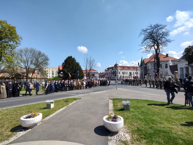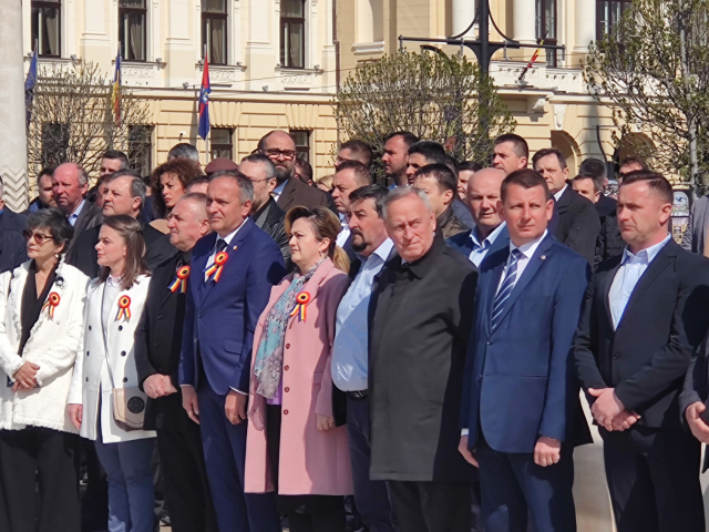 Primarul Florin Birta s-a adresat celor prezenți vorbind despre responsabilitatea politică, pe care cei care conduc o comunitate, o au față de prezent și viitor: „O comunitate își păstrează unitatea și identitatea în jurul propriei istorii. Aniversând trecutul și proiectând mereu viitorul, sunt onorat să fiu primarul unui oraș care rămâne un model de conviețuire, de confluență a culturilor și confesiunilor care fac parte din patrimoniul național și european. Deseori acțiunile formale ale unui eveniment trec în plan secund încărcătura simbolică a acestuia. Prezența noastră azi, autorități și cetățeni, cu toții responsabili de destinul neamului fără diferențe de statut, aș dori să fie, pe lângă actul aniversar și un moment care să ne inspire responsabilitatea politică pe care o avem față de prezent și viitor”.
