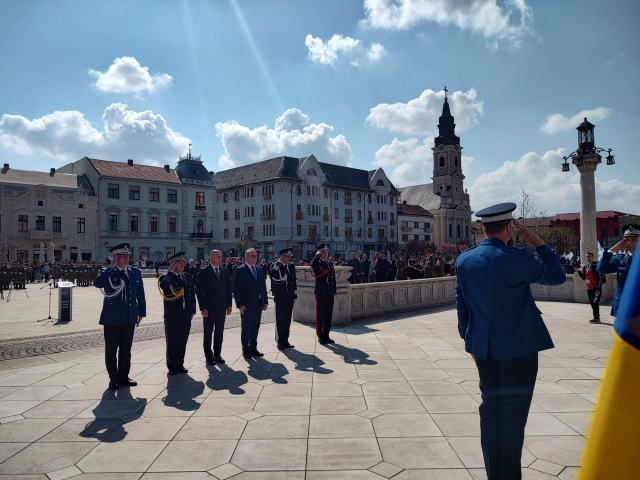 Ceremonialul a debutat cu intonarea Imnului Național al României în prezența reprezentanților autorităților locale, respectiv a primarului Florin Birta, a prefectului Dumitru Țiplea, a președintelui Consiliului Județean, Ilie Bolojan, a ambasadorului României în Regatul Spaniei, George Bologan, dar și a premierului României, Nicolae Ciucă, a ministrului Dezvoltării, Lucrărilor Publice și Administrației, Cseke Attila, a ministrului Cercetării, Inovării și Digitalizării, Marcel Boloș, a ministrului Afacerilor Interne, Lucian Bode, a șefului cancelariei prim-ministrului, Mircea Abrudean, precum și în prezența altor reprezentanți ai Guvernului și autorităților locale.