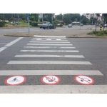 Aceste pictograme îi avertizează pe cei care traversează strada pe trecerea de pietoni să nu utilizeze telefonul, să nu asculte muzică în căşti şi să coboare de pe bicicletă când se angajează în traversare pe zebră.