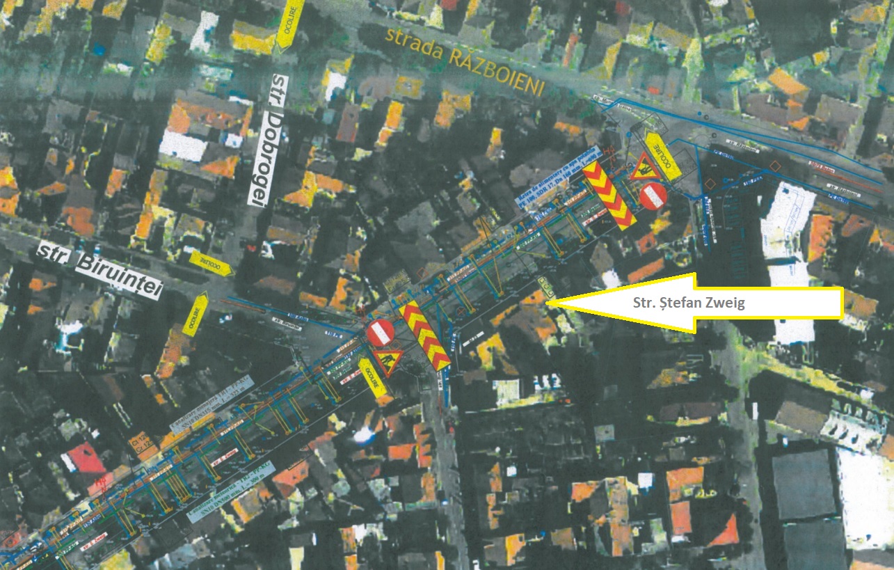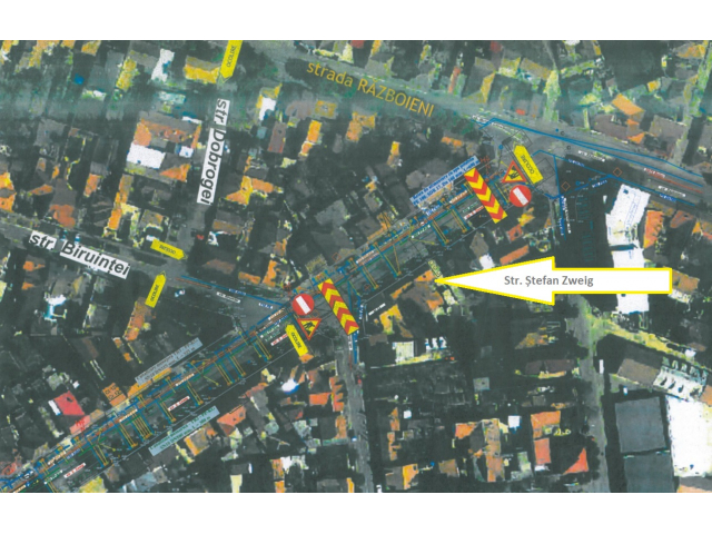 De asemenea, pentru realizarea racordurilor transversale aferente lucrărilor de modernizare a rețelei de apă și canalizare ce se desfășoară pe strada Ștefan Zweig, în perioada 10 – 14 martie va fi închisă circulația pe strada Ștefan Zweig, între sensul giratoriu cu străzile Muntele Găina – Războieni și Biruinței, pe o lungime de 100 de metri.