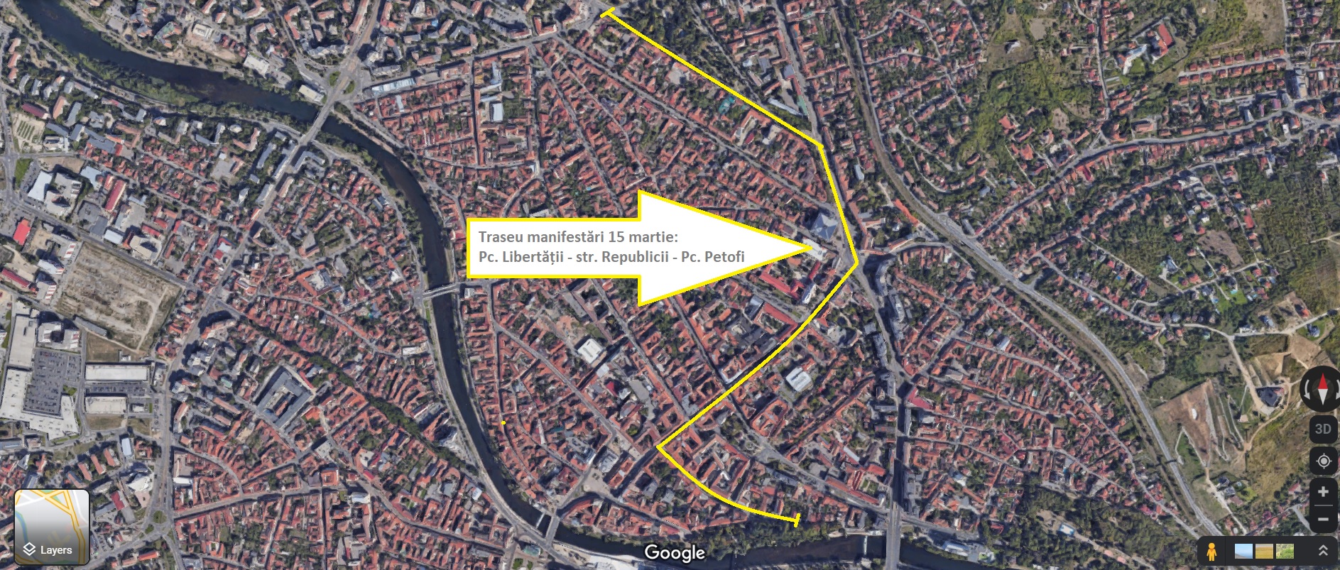 Aceste restricții sunt cauzate de retragerea cu torțe organizată în cadrul manifestărilor, pe traseul Parc Libertății – Iosif Vulcan – pietonalul străzii Republicii – Parc Petofi.