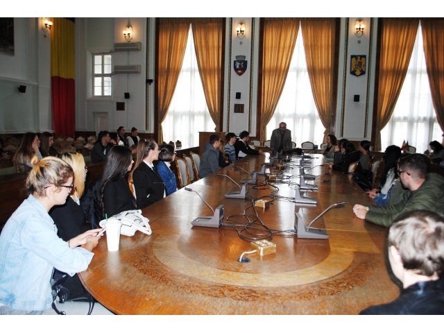 Întâlnirea a fost deschisă de lector univ. dr. Mihai Maci, care le-a descris studenților locul în care se află, respectiv Sala Mare a Primăriei Oradea, unde se desfășoară ședințele de Consiliu Local, ca fiind „pupitrul de comandă al orașului”. În continuare, acesta le-a descris tinerilor rolul administrației locale în dezvoltarea unui oraș, în satisfacerea nevoilor cetățenilor prin serviciile pe care le asigură, dar și în luarea unor decizii importante pentru comunitatea locală.