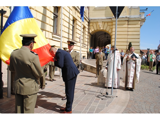 „În decursul istoriei, toate popoarele au căutat să se identifice într-un anume fel. Acest fel de a se identifica pentru înaintașii nostri se numește drapel, steag, stindard, flamură, așa cum a fost el denumit de-a lungul timpului. Aici, acum 2000 de ani, împăratul Traian a înfipt în inima Ardealului steagul cu lupi. De atunci încoace, pentru românii ardeleni, steagul a reprezentat întodeauna ceva suprem, iar acest suprem a fost definit de cărturarul Nicolae Iorga care spunea că pentru românii ardeleni steagul e ca bolta cerului de necuprins, iar pentru acest steag s-au dus toate bătăliile”, a spus colonel în rezervă dr. Constantin Moșincat.