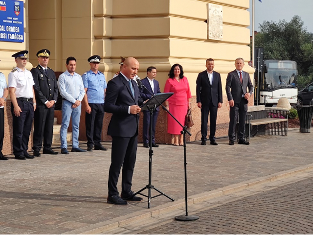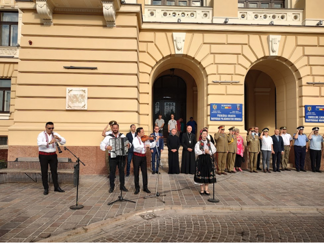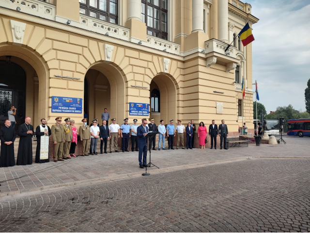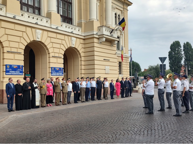 Primarul Florin Birta a participat azi, 29 iulie, la ceremonia militară organizată pe platoul din fața Primăriei Oradea cu ocazia Zilei Imnului Național al României.