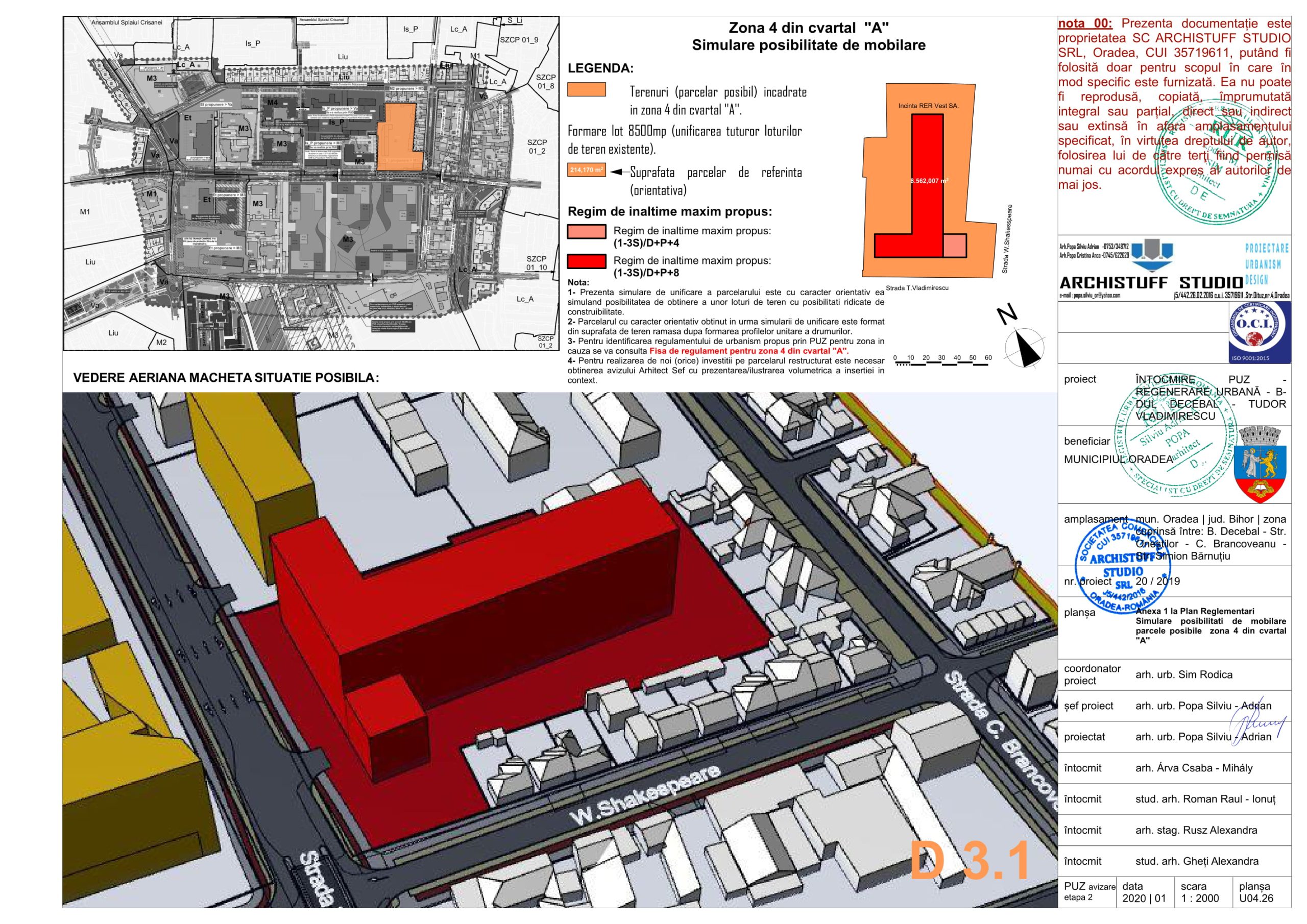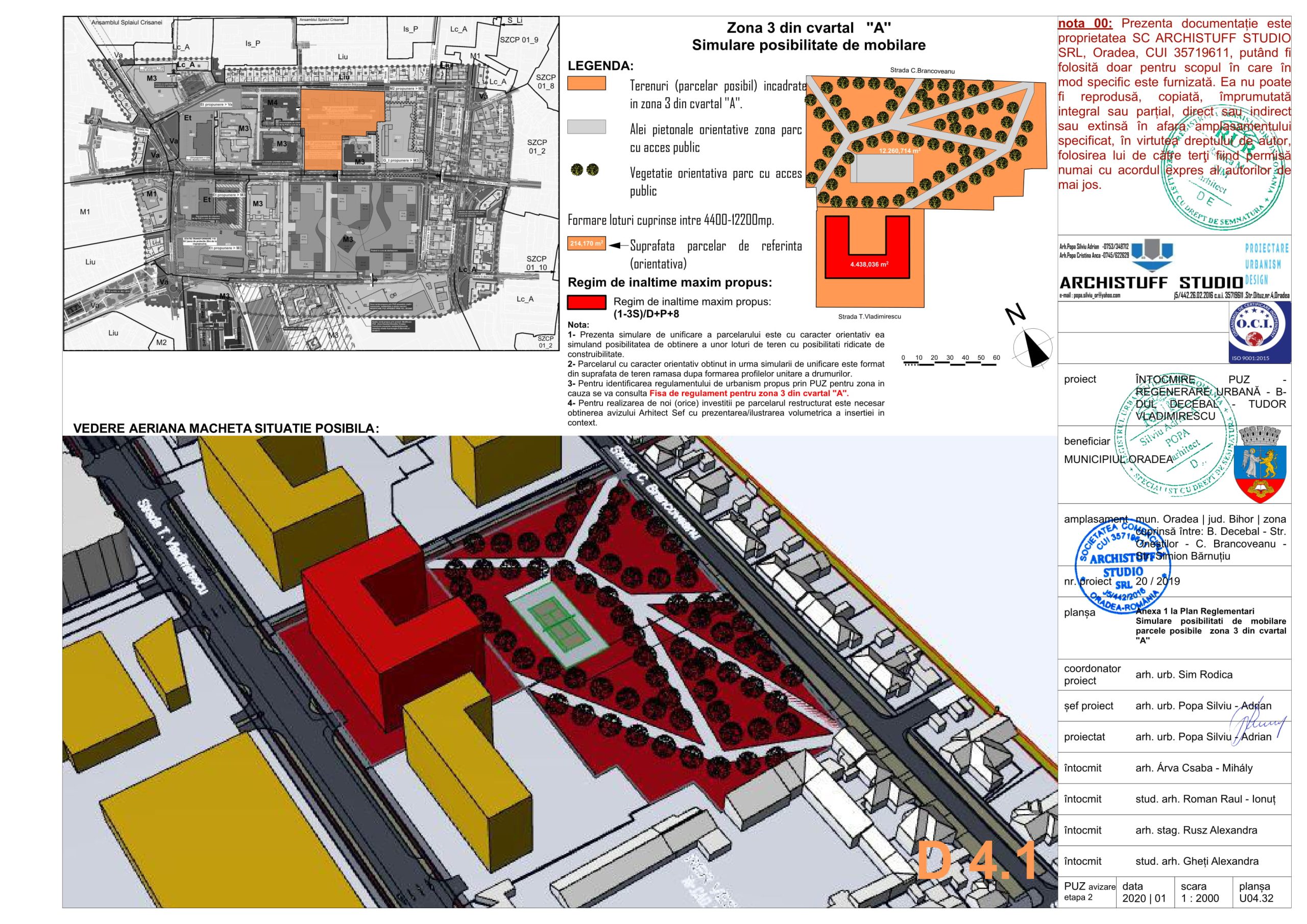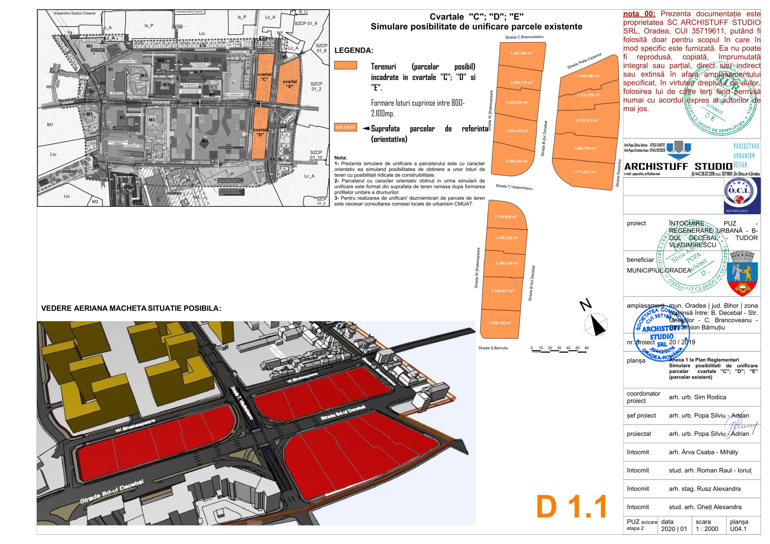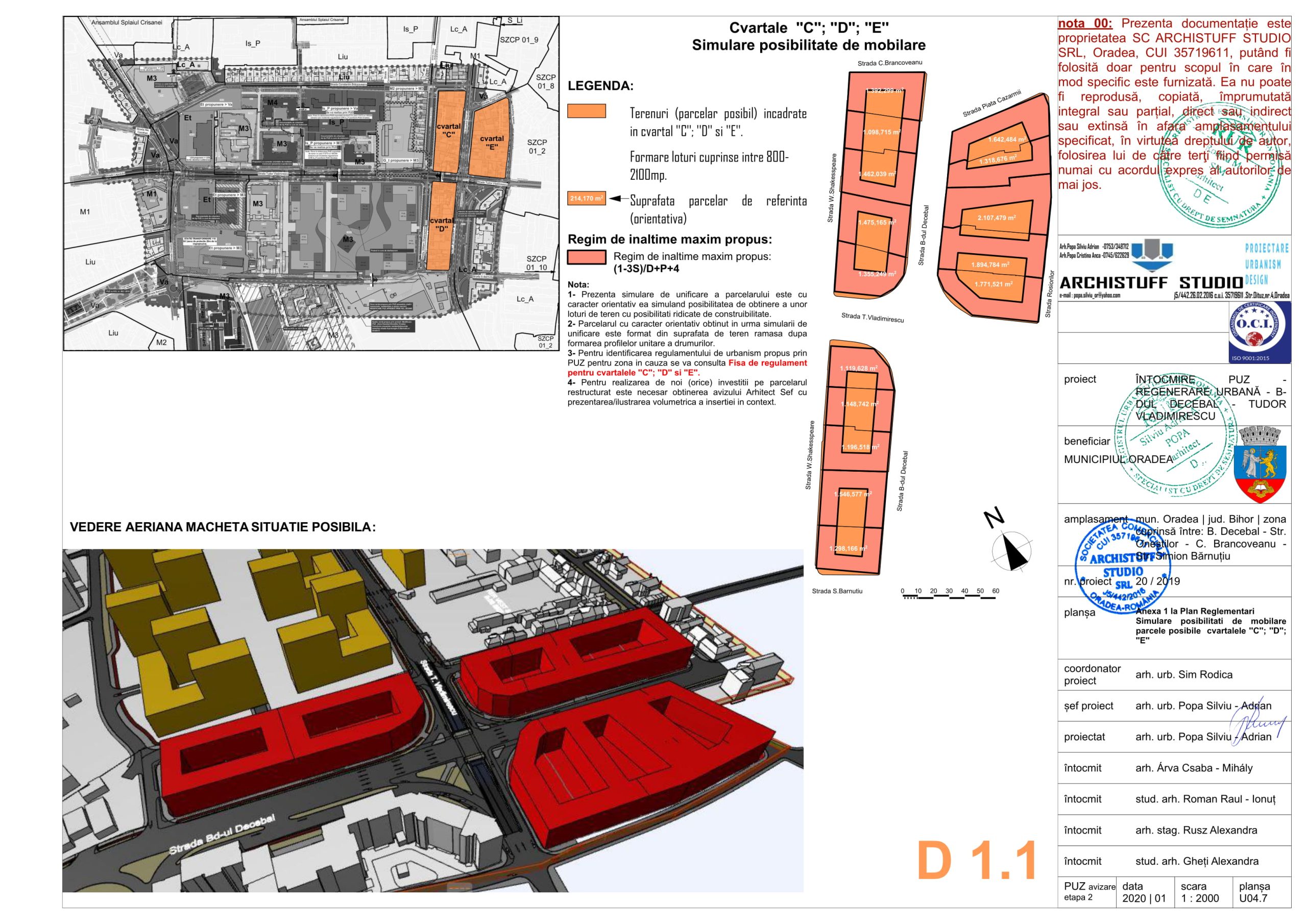 Planul urbanistic este elaborat de catre arh. Popa Silviu, la initiativa beneficiarei Primaria municipiului Oradea.