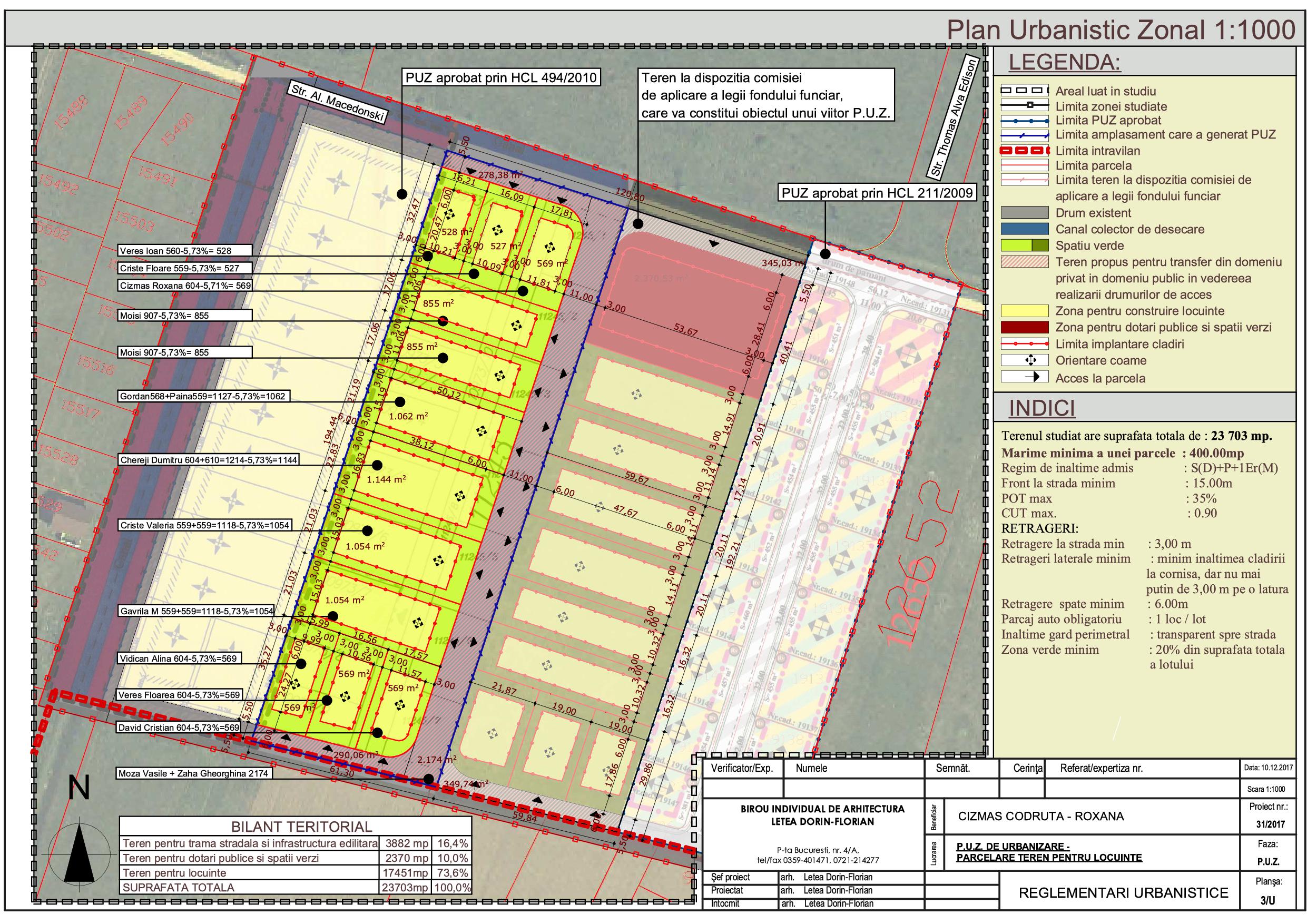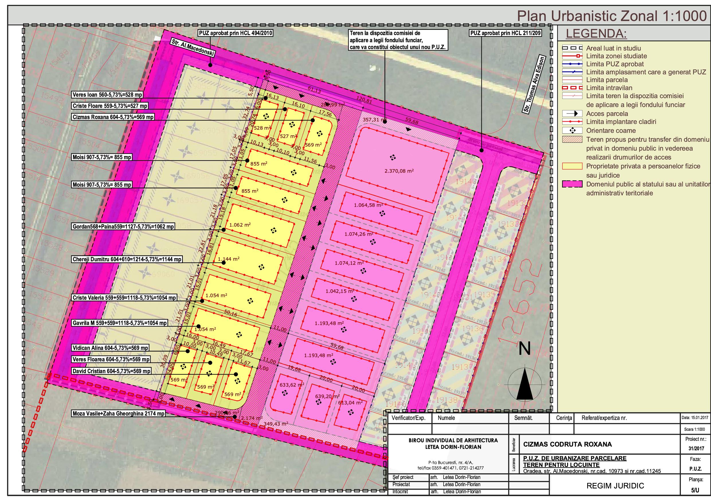 Primaria municipiului Oradea anunta elaborarea unui plan urbanistic zonal de urbanizare – Parcelare teren pentru locuinte – pentru un teritoriu delimitat de str.Alexandru Macedonski – la nord, teritoriul studiat prin PUZ aprobat cu HCL nr.211/2009 – la est, teritoriul studiat prin PUZ aprobat cu HCL nr.494/2010 – la vest si limita de intravilan – la sud; – Suprafata de teren supusa procedurii de urbanizare este de 23703,0mp conform proiectului intocmit de catre arh. Letea Dorin specialist cu drept de semnatura RUR;