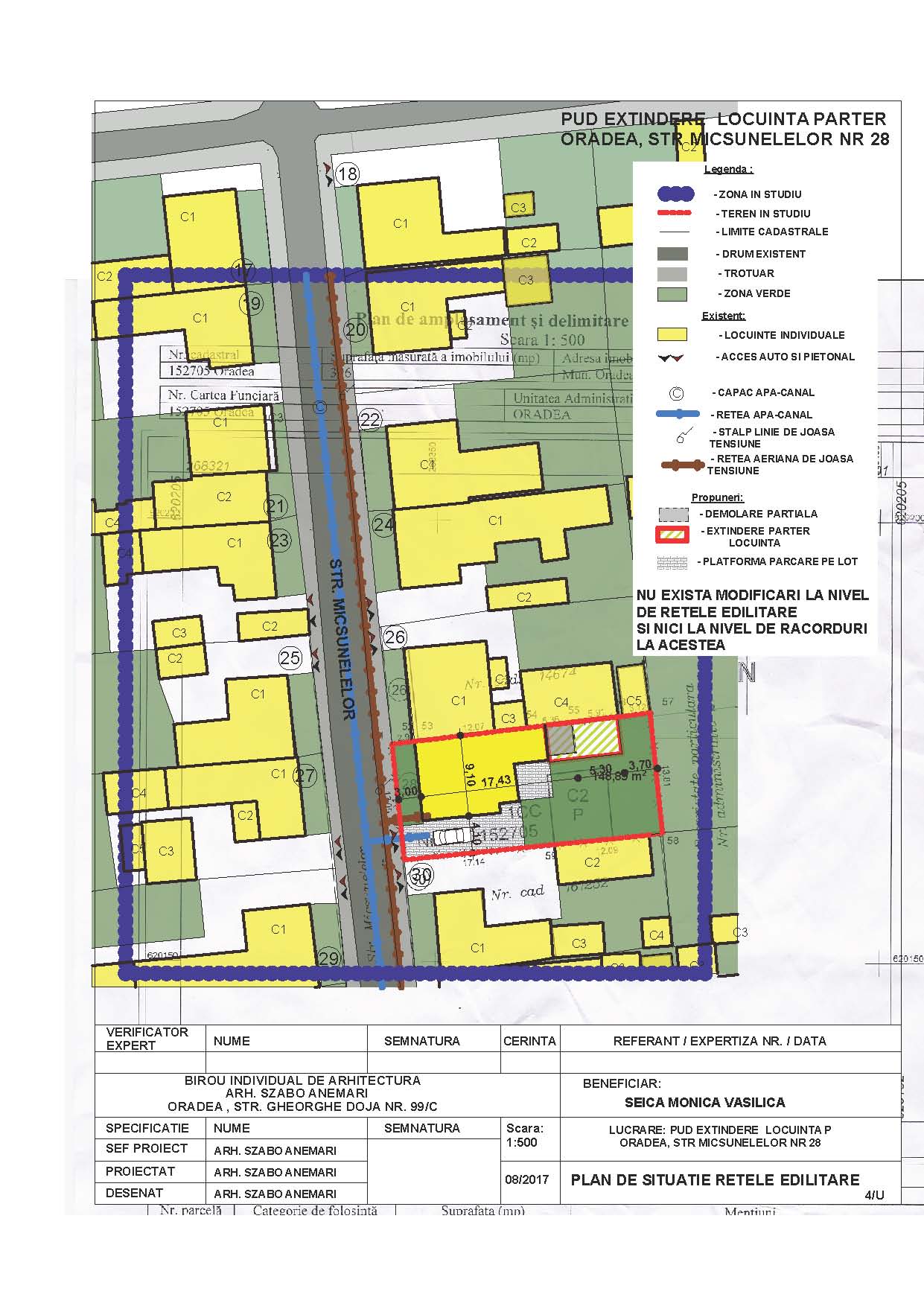 Prin planul urbanistic de detaliu initiat de SEICA MONICA VASILICA, se propune extinderea locuintei, str. Micsunelelor, nr.28, nr.cad. 152705 – Oradea, conform plansei de Reglementari urbanistice (3/U) aferent PUD.