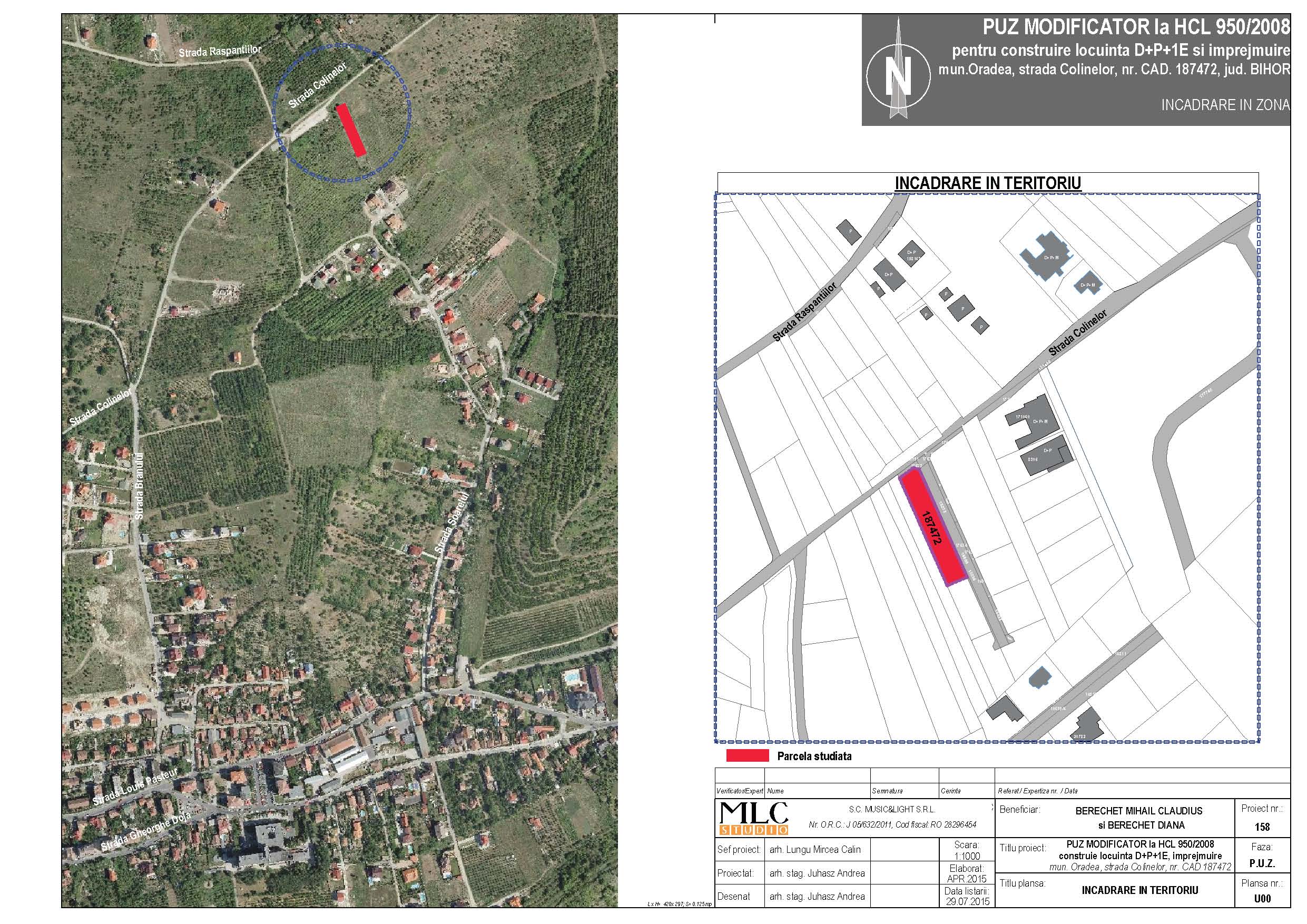 A N U N T privind elaborarea PUZ – Modificator la HCL 950/2008 si construire locuinta str. Colinelor, nr. cadastral 187472 – Oradea
