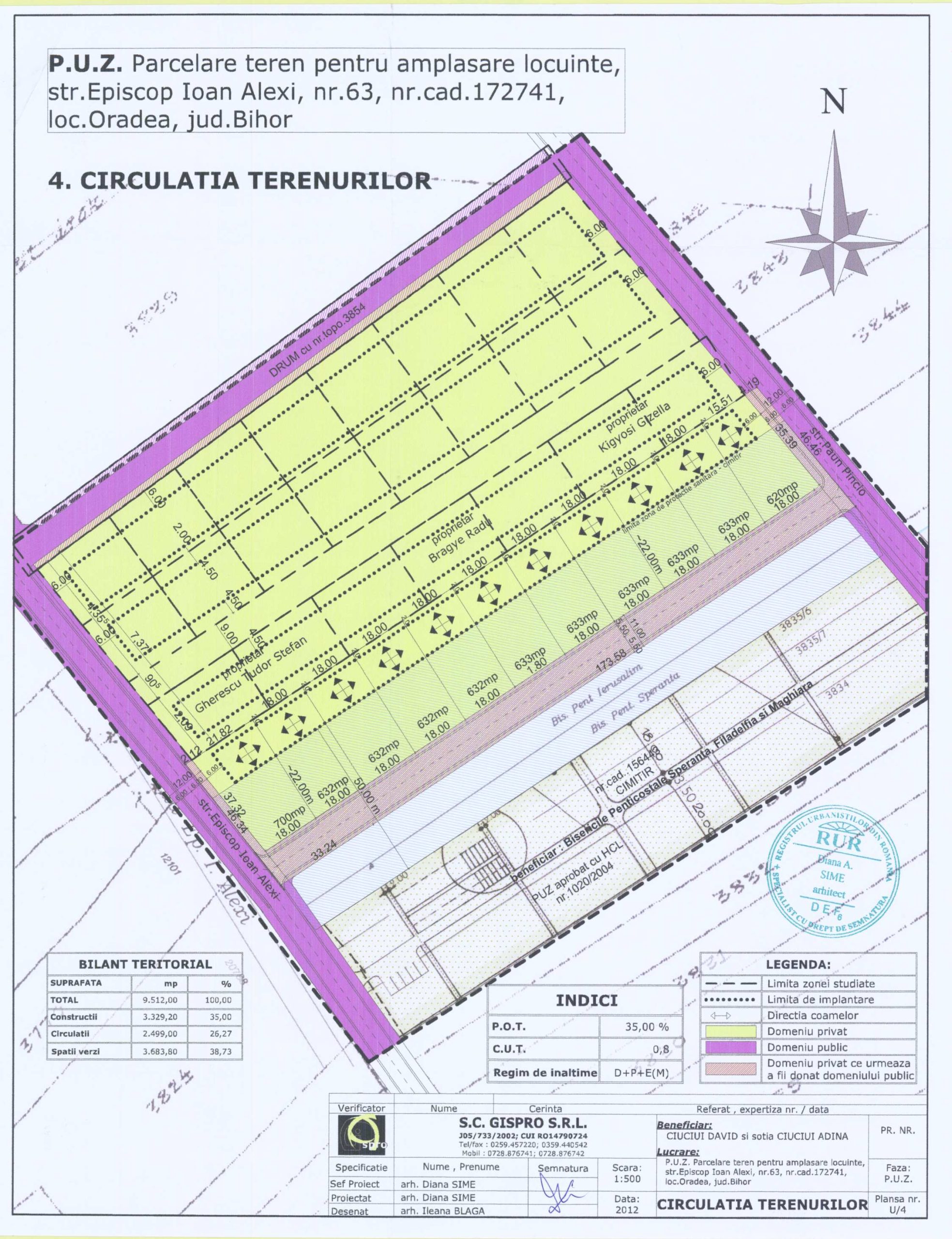 Prin planul urbanistic zonal initiat de dl Ciuciui David, se propune constituirea unei zone rezidentiale de tip R1b, prin parcelarea terenului identificat cu nr. cad. 172741-Oradea pentru locuinte in urmatoarele conditii: