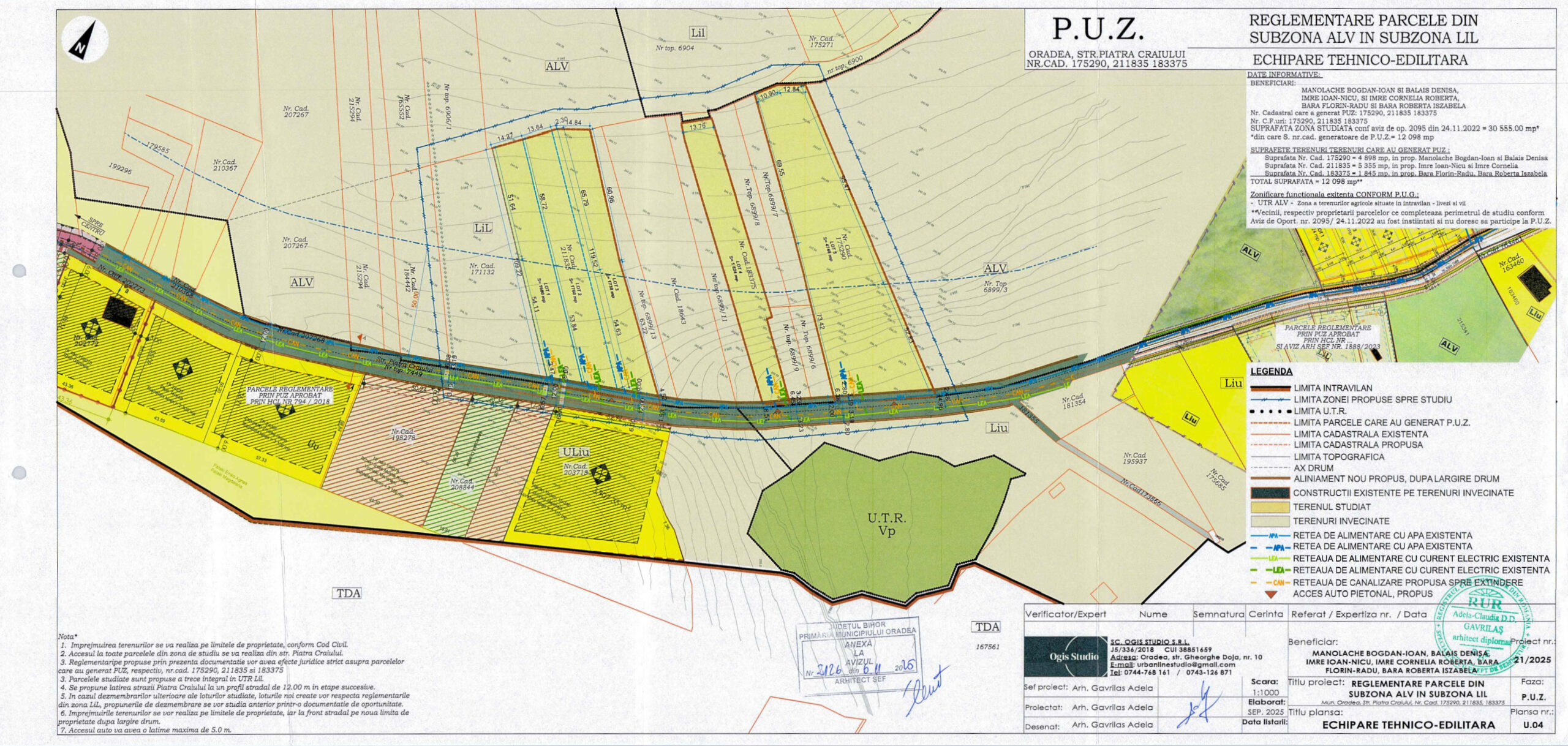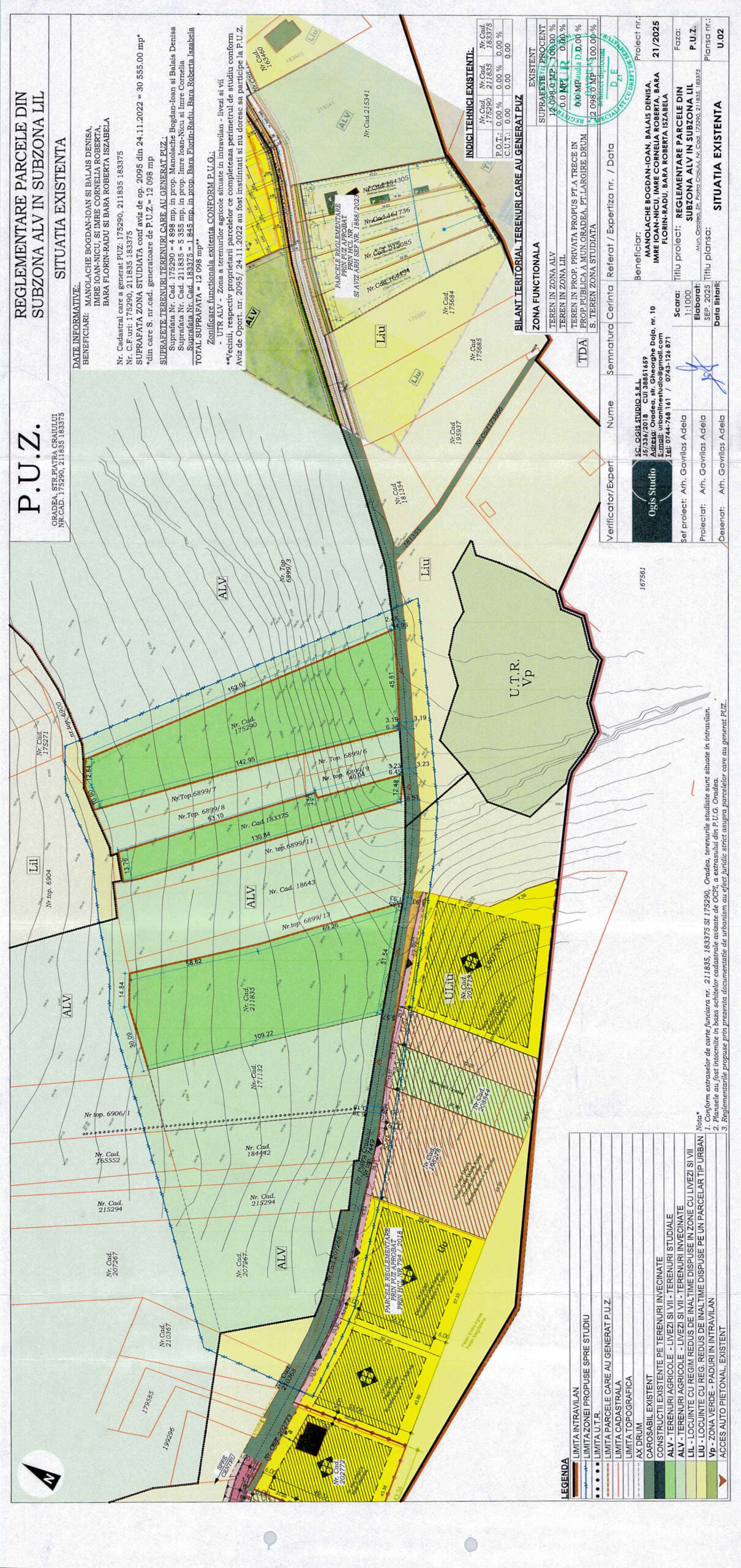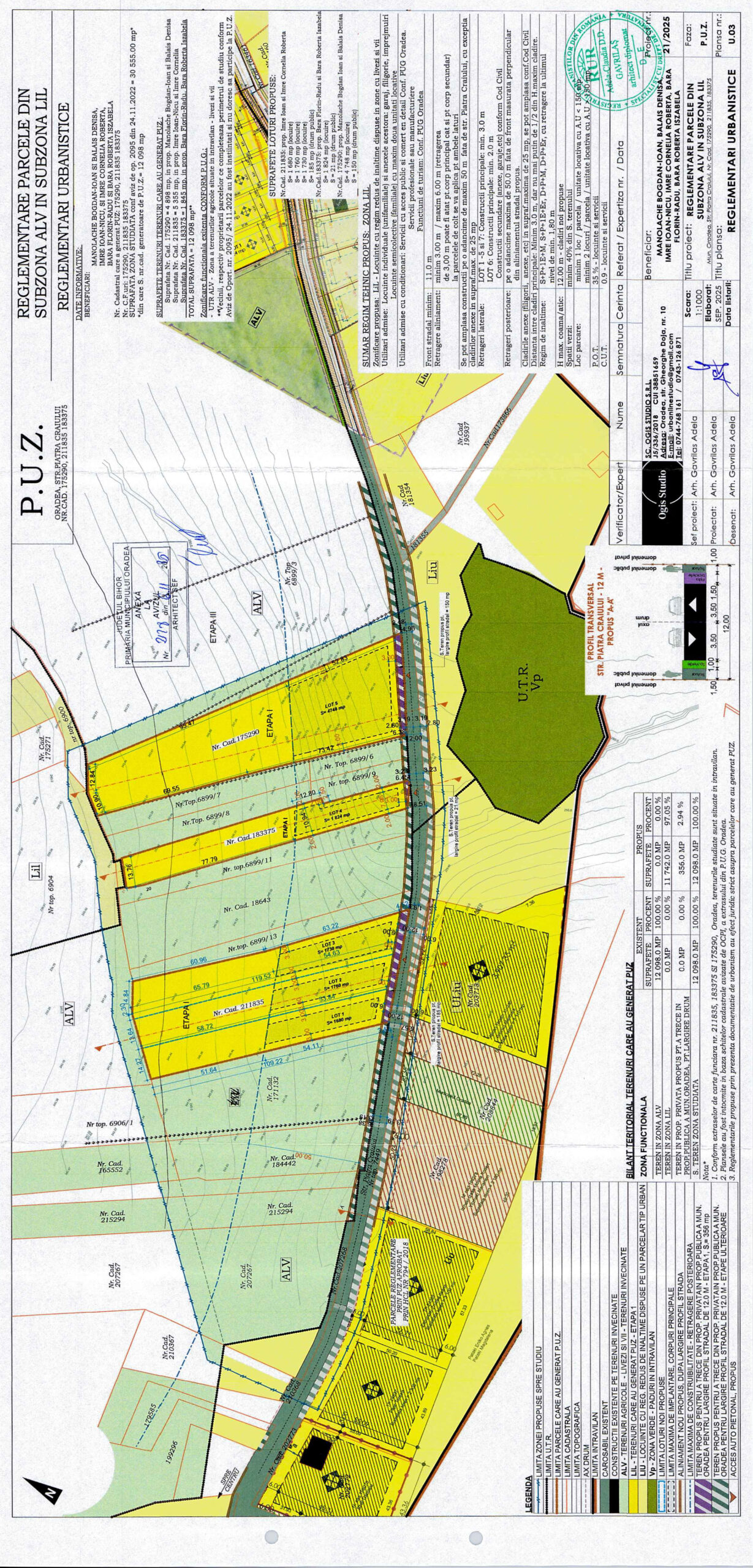 a) Reconversie functionala din UTR ALV in UTR Lil a parcelelor identificate cu nr.cad.211835, 183375, 175290; S=12098 mp. Restul parcelelor cuprinse în zona de studiu rămân în ALV