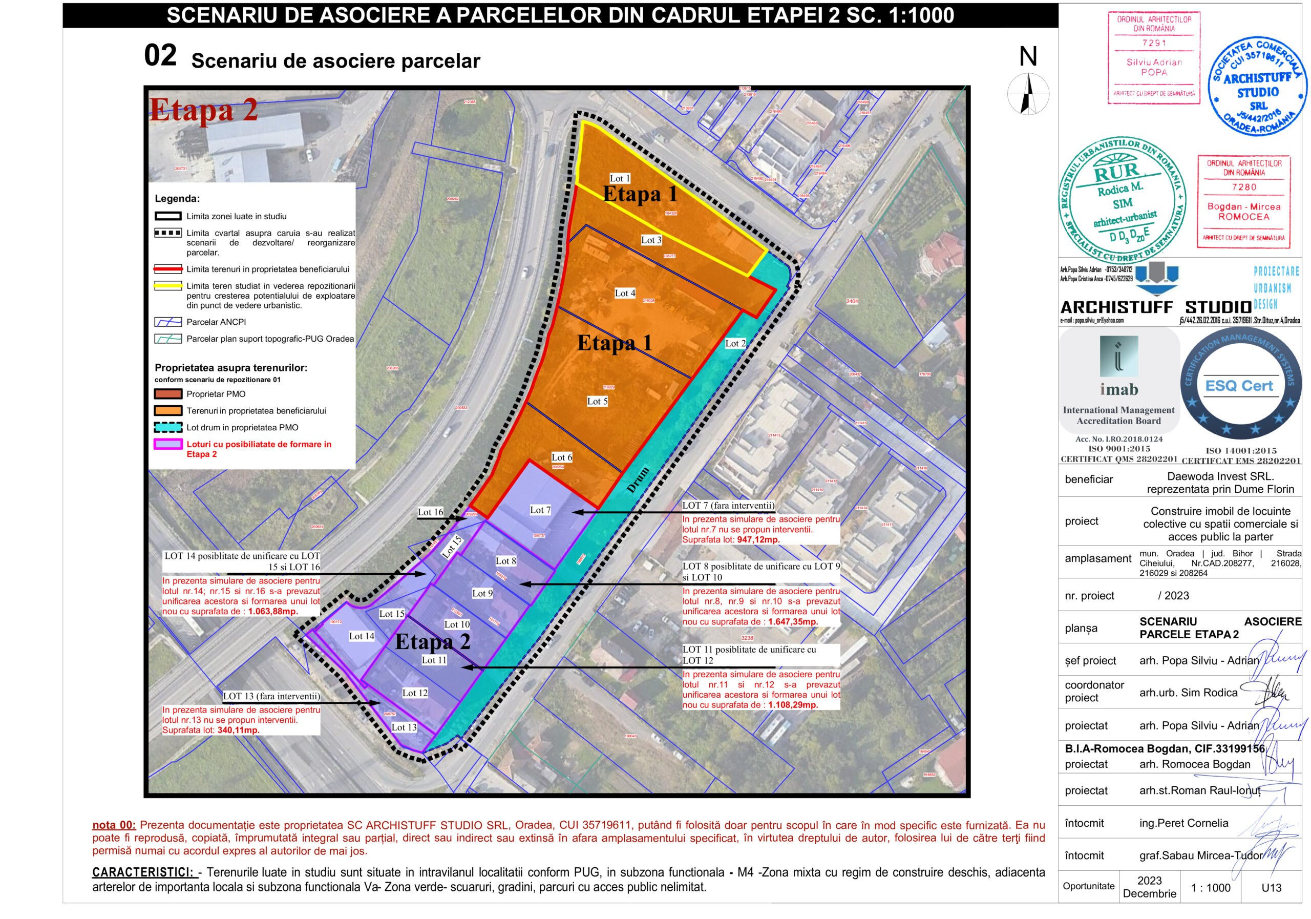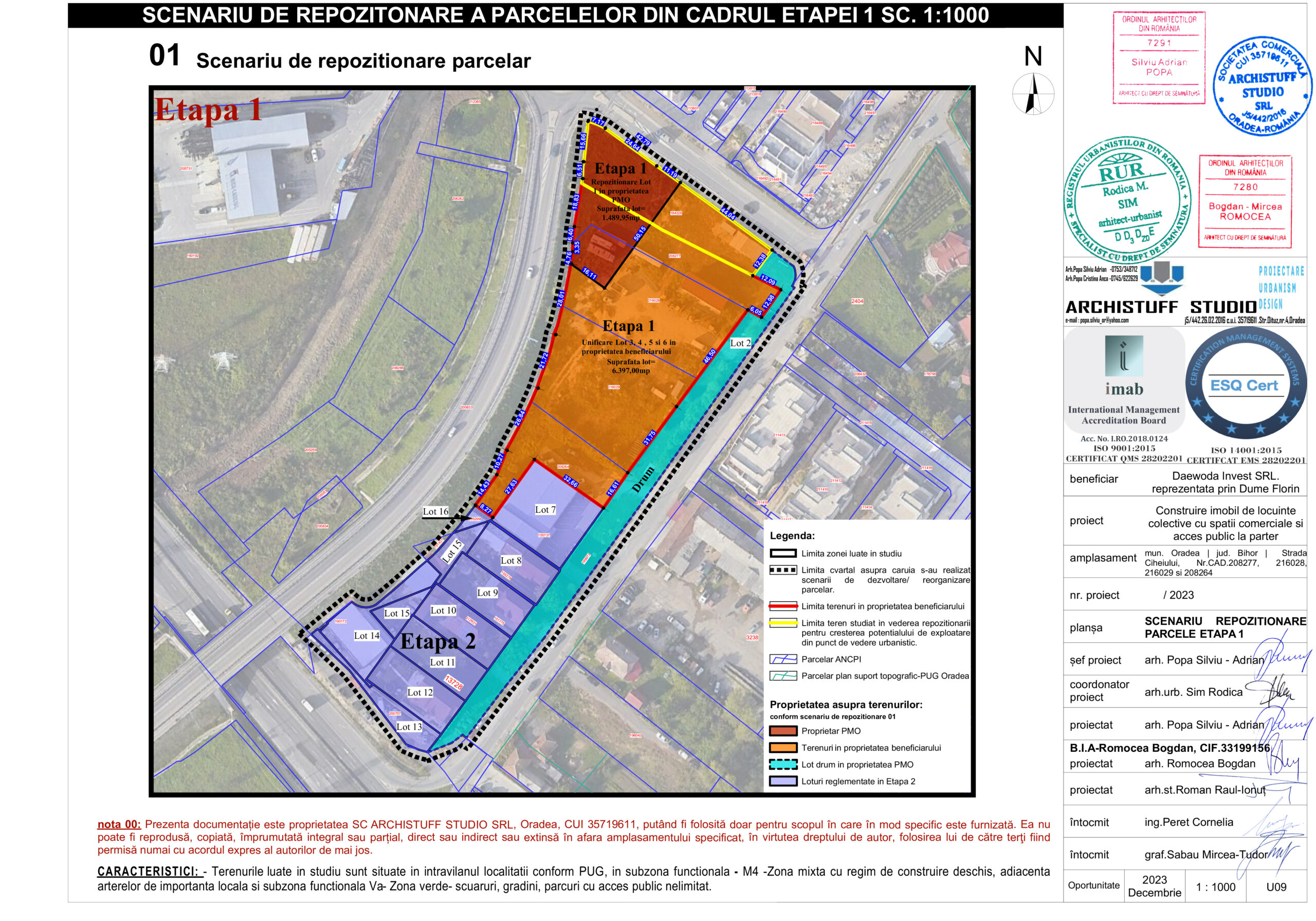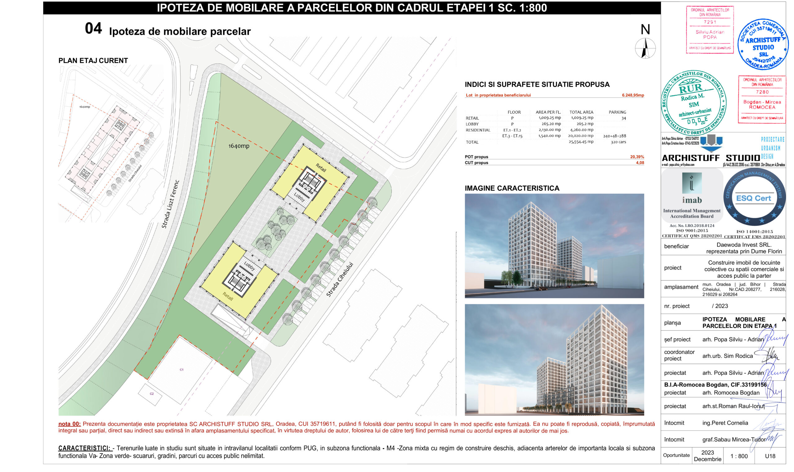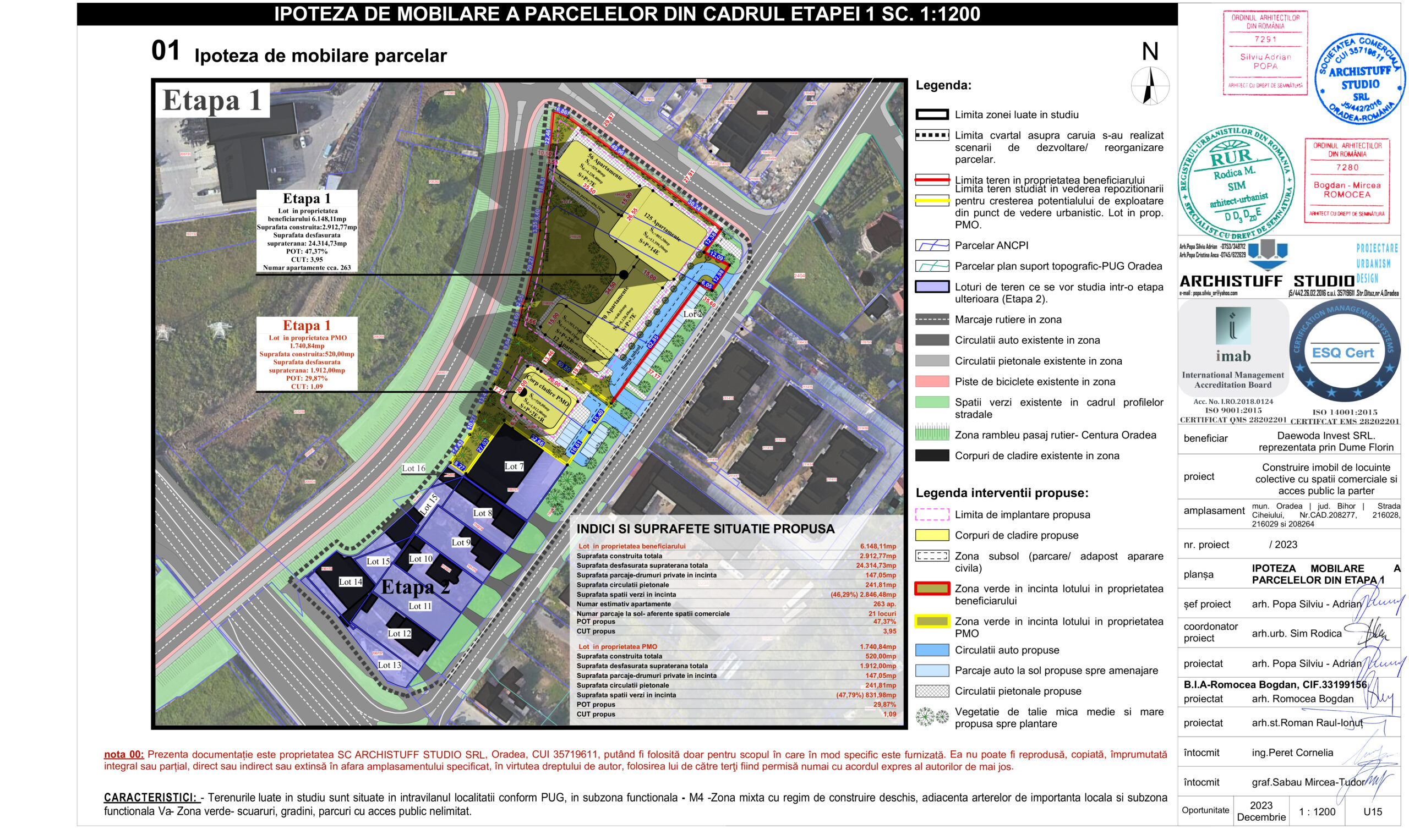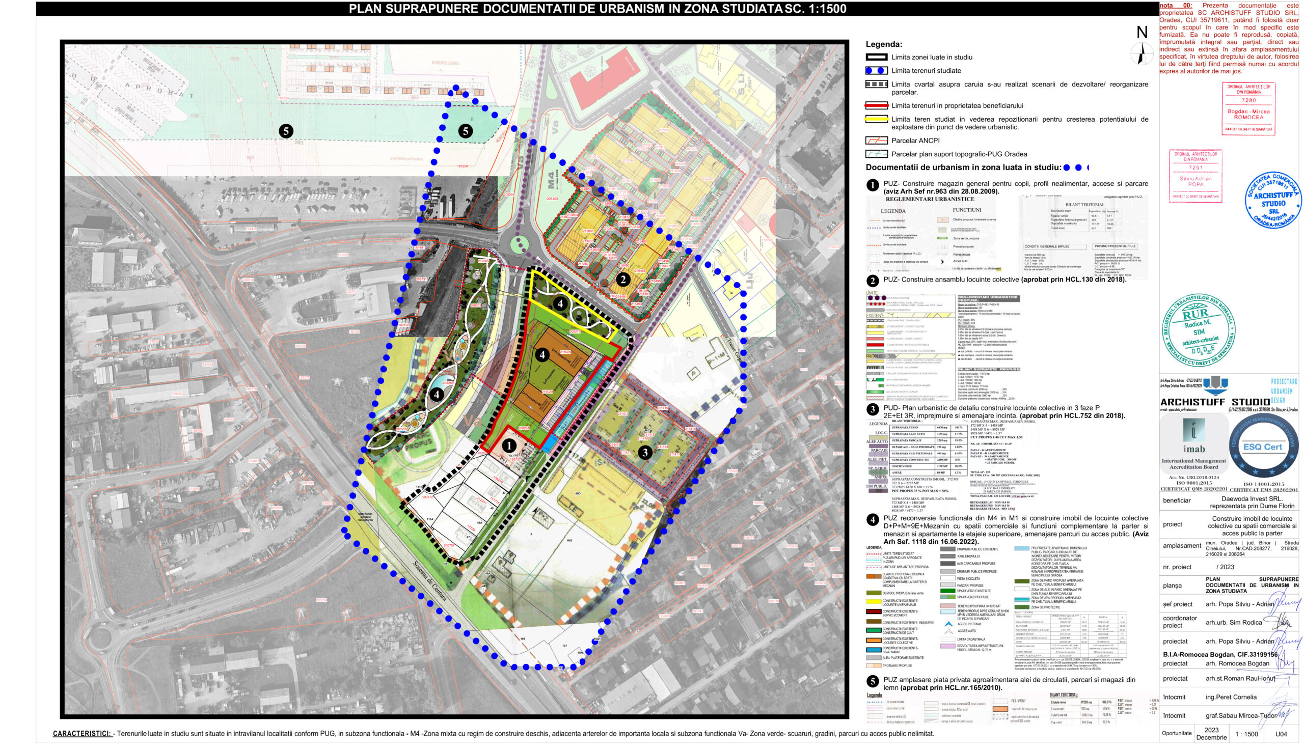 Primaria municipiului Oradea anunta intentia de elaborare a unui plan urbanistic zonal de reconversie functionala din M4 in M1 si construire imobil locuinte colective cu spatii comerciale si acces public la parter, str. Ciheiului, nr. cad.208277, 216028, 216029, 208264 Oradea.