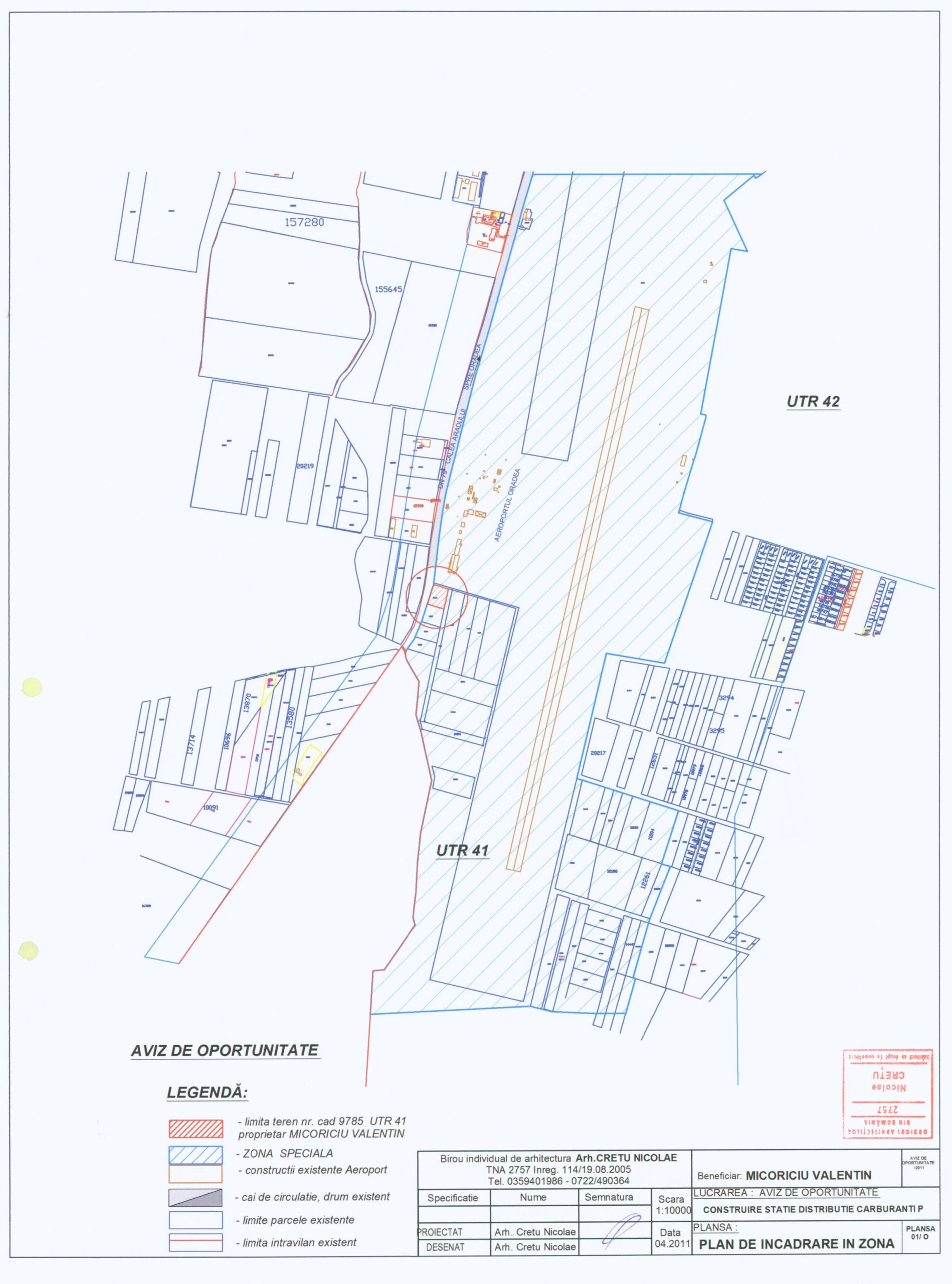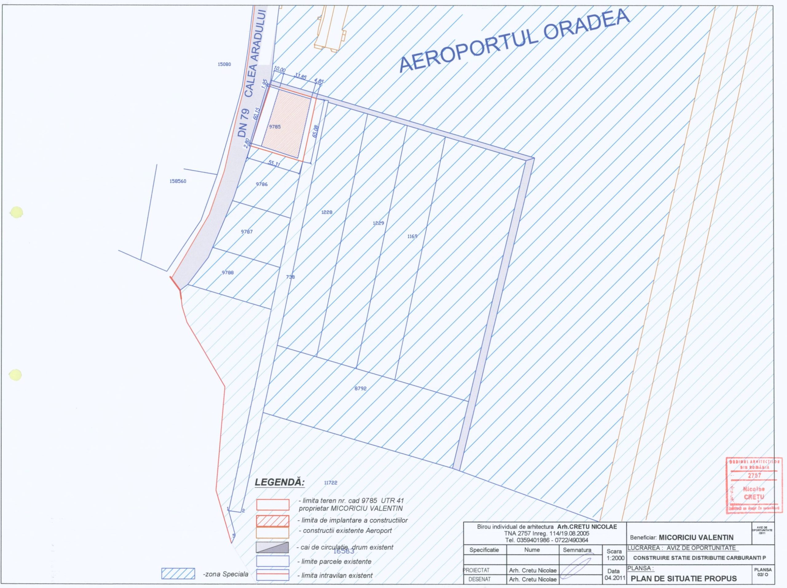 Primaria municipiului Oradea anunta intentia de elaborarea unui plan urbanistic zonal pentru amplasarea unei statii de carburanti in vecinatatea aeroportului, pe o parcela adiacenta drumului DN 79 si studierea circulatiei in zona.