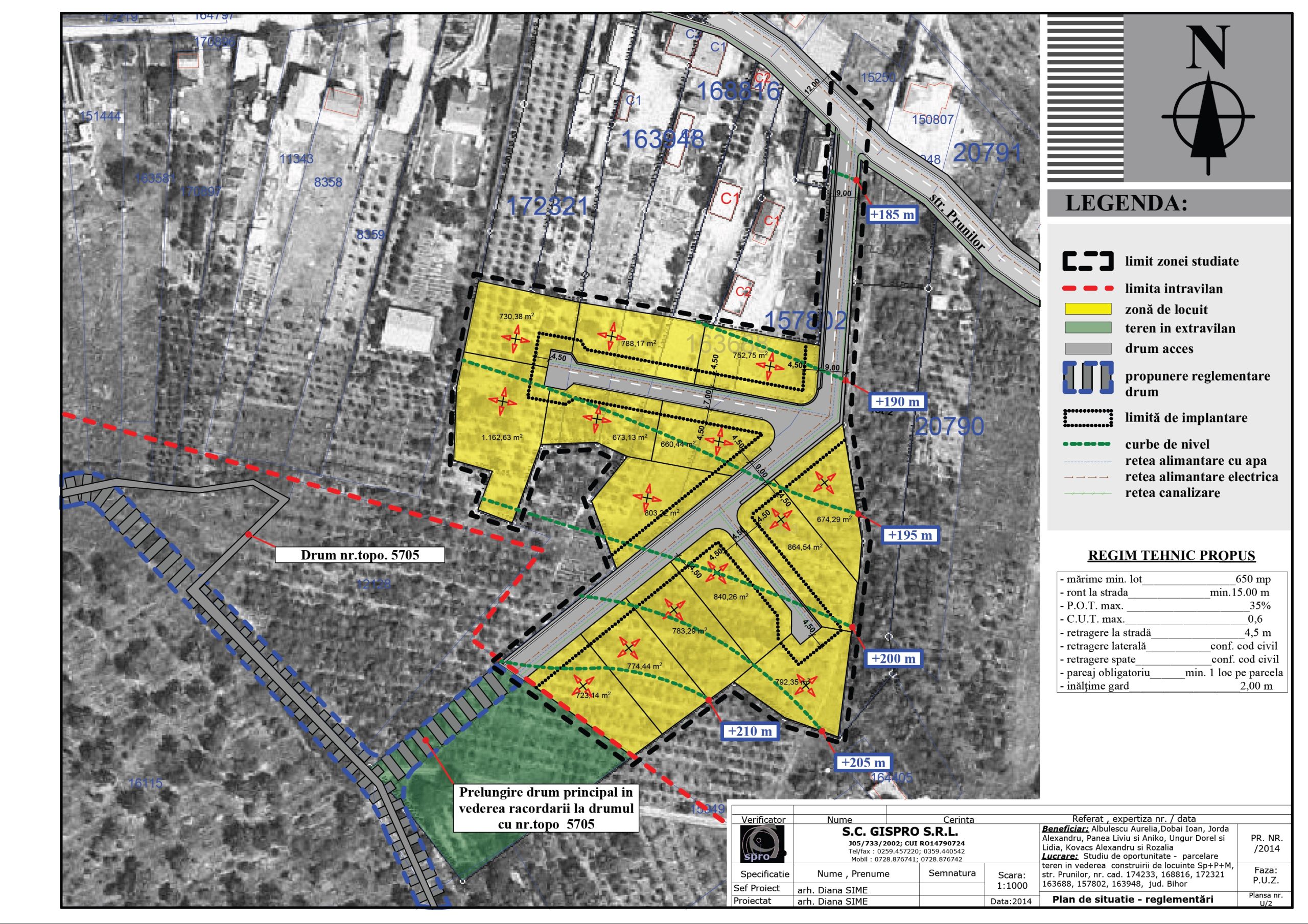 Prin planul urbanistic zonal initiat de Albulescu Aurelia, se propune parcelarea terenului identificat cu nr.cad.174233, nr.cad.168816, nr.cad.172321, nr.cad.163688, nr.cad.157802, nr.cad.163948, in vederea de amplasarii de locuinte individuale , in urmatoarele conditii: