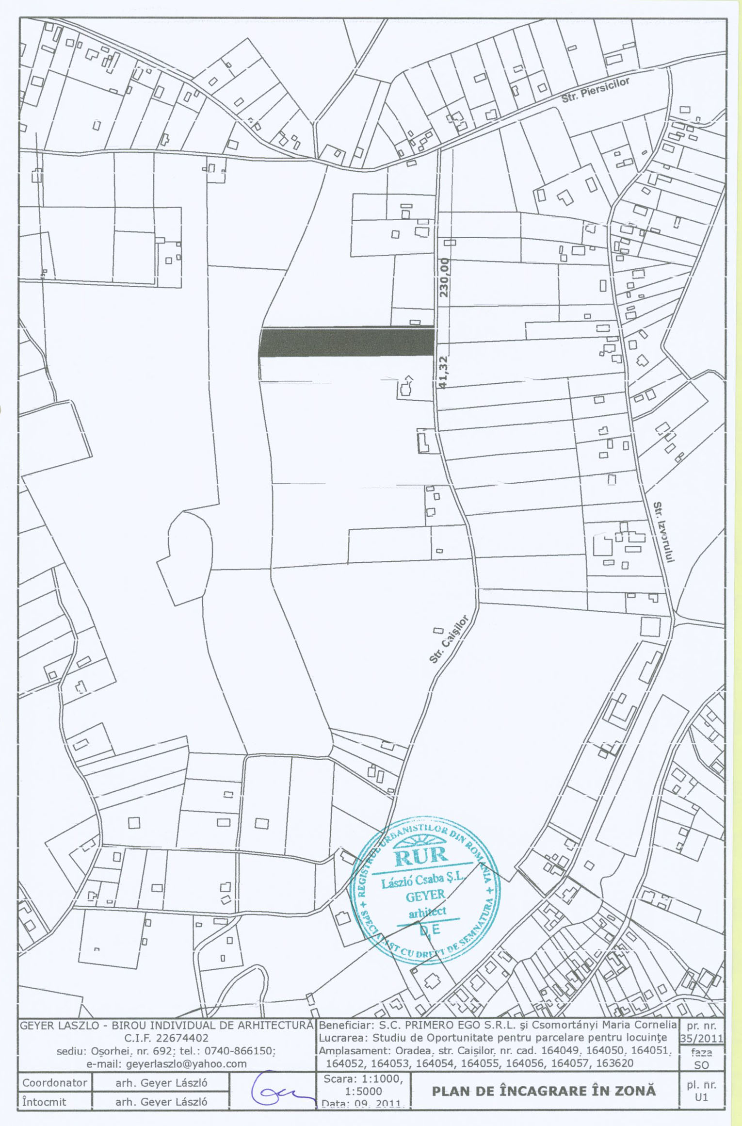 privind intentia de elaborare PUZ – Parcelare teren pentru amplasare locuinte individuale, str.Caisilor nr.cad. 163620 si 164049 ÷164057-Oradea