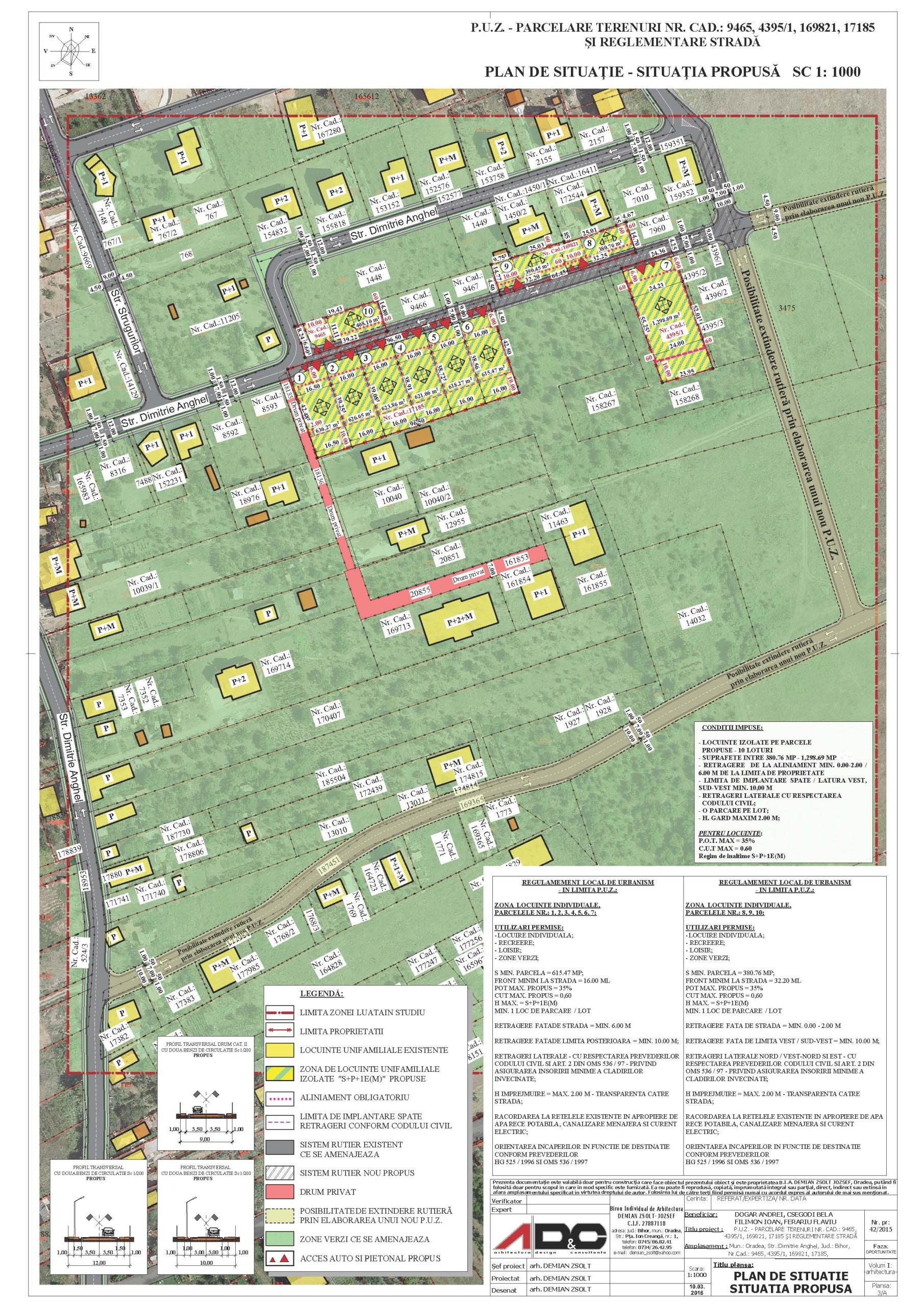 Prin planul urbanistic zonal initiat de FILIMON IOAN, se propune parcelarea terenului identificat cu nr.cad. 9465, nr.cad.4395/1, nr.cad. 169821, nr.cad.17185 – Oradea, in vederea de amplasarii de locuinte si servicii de cartier, in urmatoarele conditii: