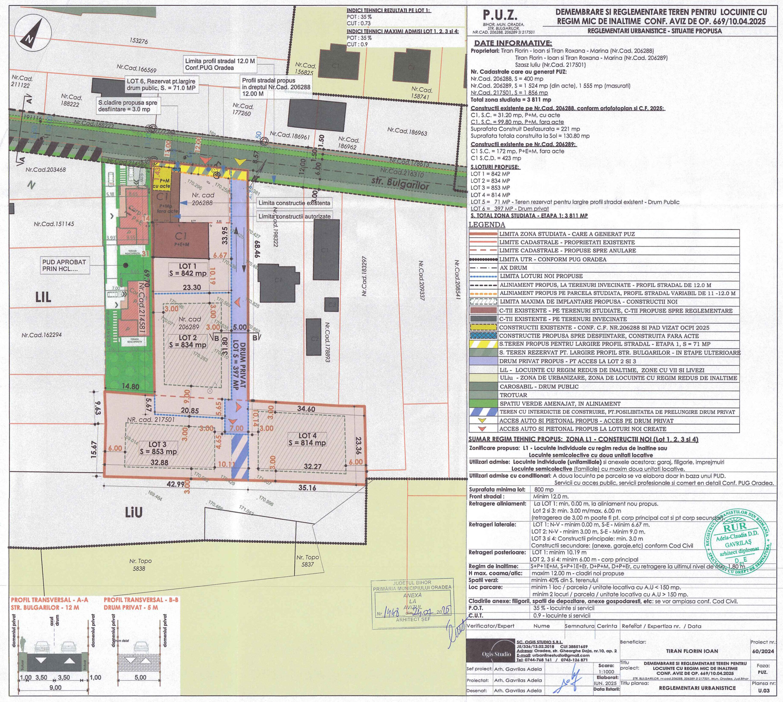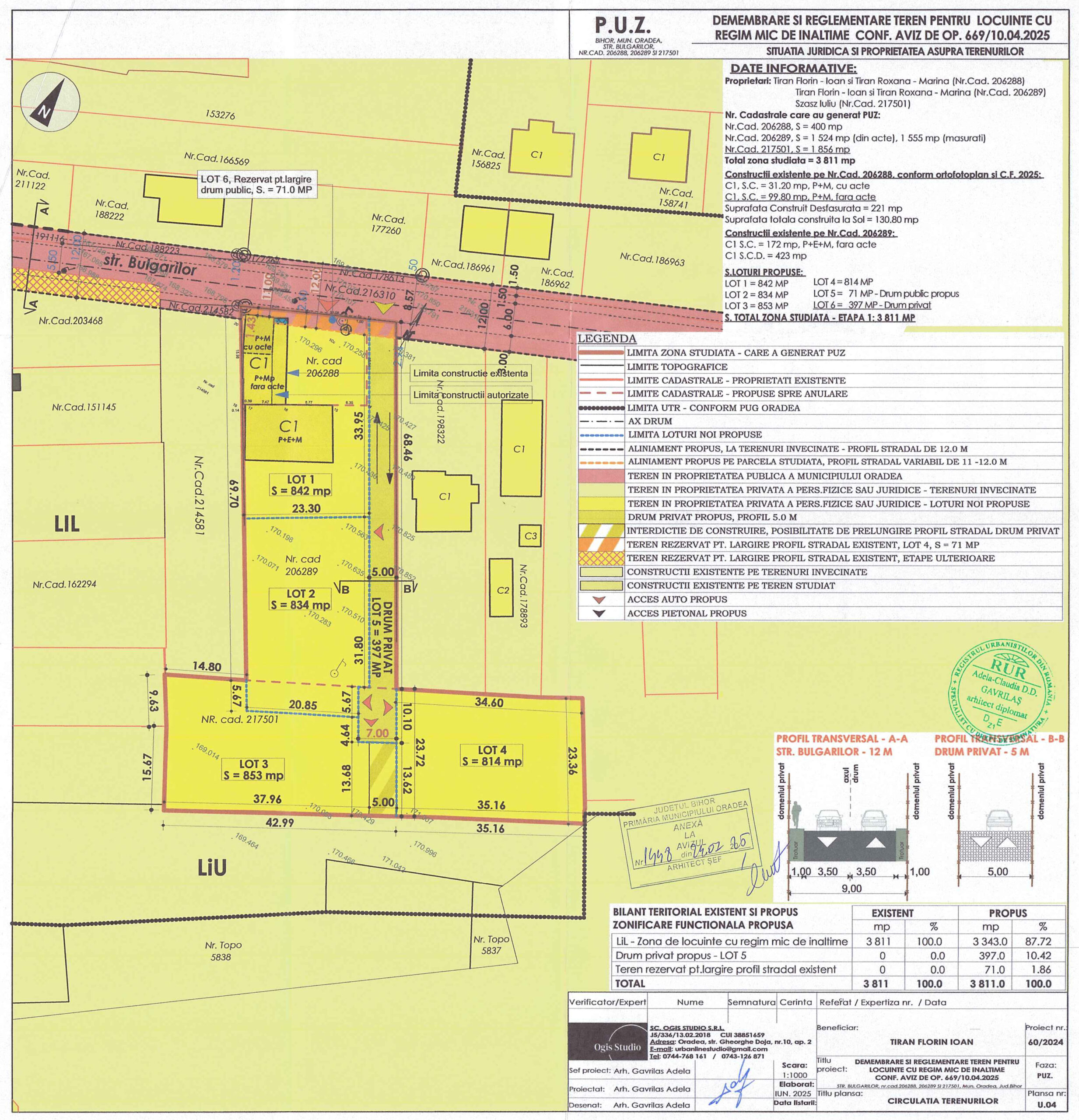 In consecinta documentatia de urbanism PUZ – Dezmembrare și reglementare teren pentru construire locuințe cu regim mic de înalțime, nr.cad.206289, 206288, 217501, str. Bulgarilor, nr.5, Oradea va fi supusa aprobarii Consiliului Local al municipiului Oradea, in forma avizata prin avizul Arhitectului-Sef nr. 1448/24.07.2025, corelat cu avizele solicitate prin Certificatul de Urbanism nr. 1787/12.05.2025.