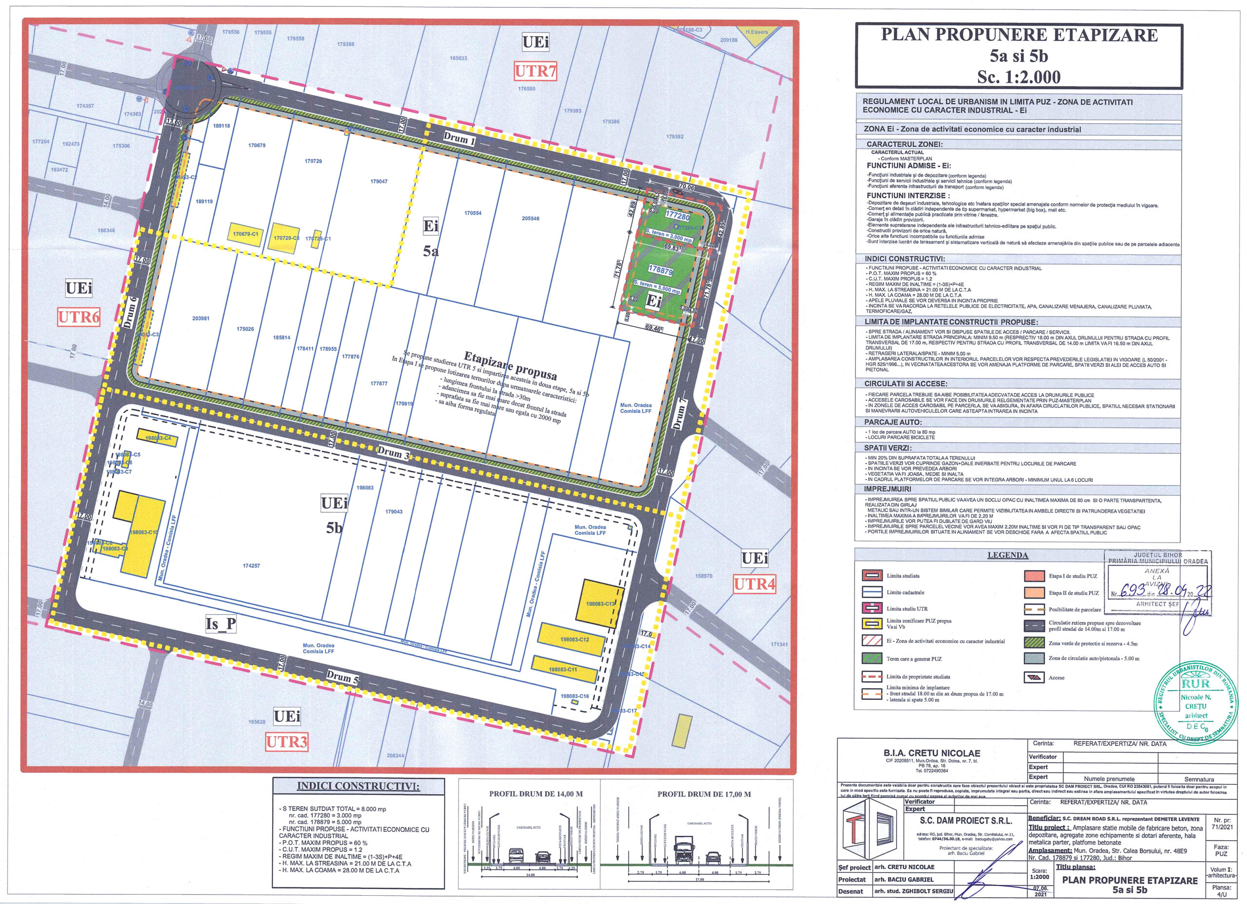 PUZ -(Etapa 5 din masterplan aprobat cu HCL 186/2018)-Dezvoltarea unei zone de activitati economice cu character industrial-Amplasare Statie Mobila de Fabricare Beton, Zona Depozitare Agregate, Zone Echipamente si Dotari Aferente, Hala Metalica Parter, Platforme Betonate, str.Cal. Borsului, nr.48E9, Nr. Cad.177280 si 178879, Oradea