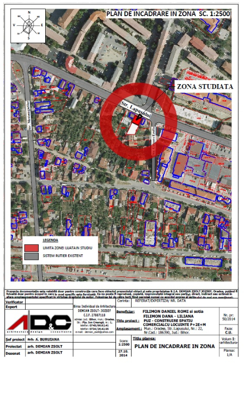 PUZ – Reconversie din zona functionala R3a in zona mixta de comert, servicii si locuinte colective; construire imobil cu destinatia de locuinte colective si spatii comerciale, str.Lapusului, nr.22- Oradea