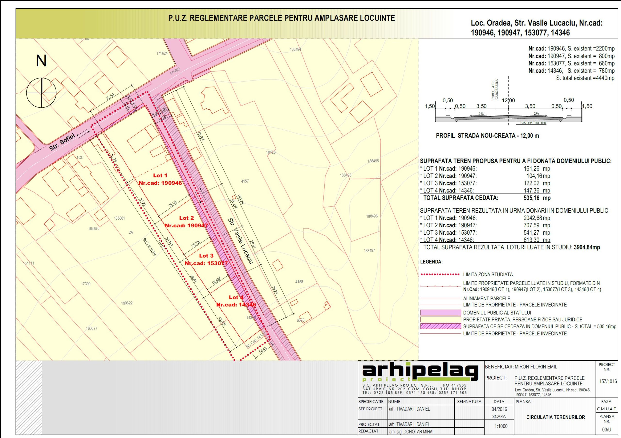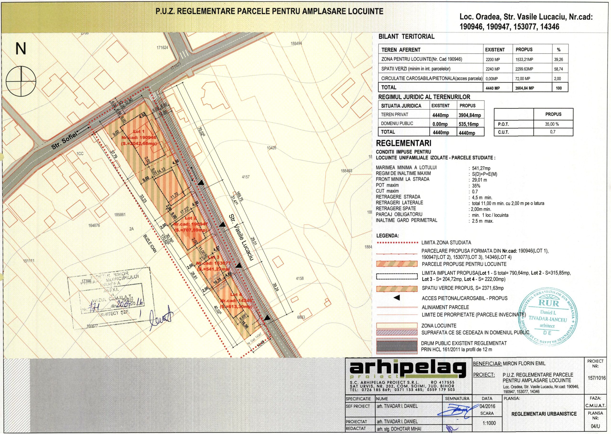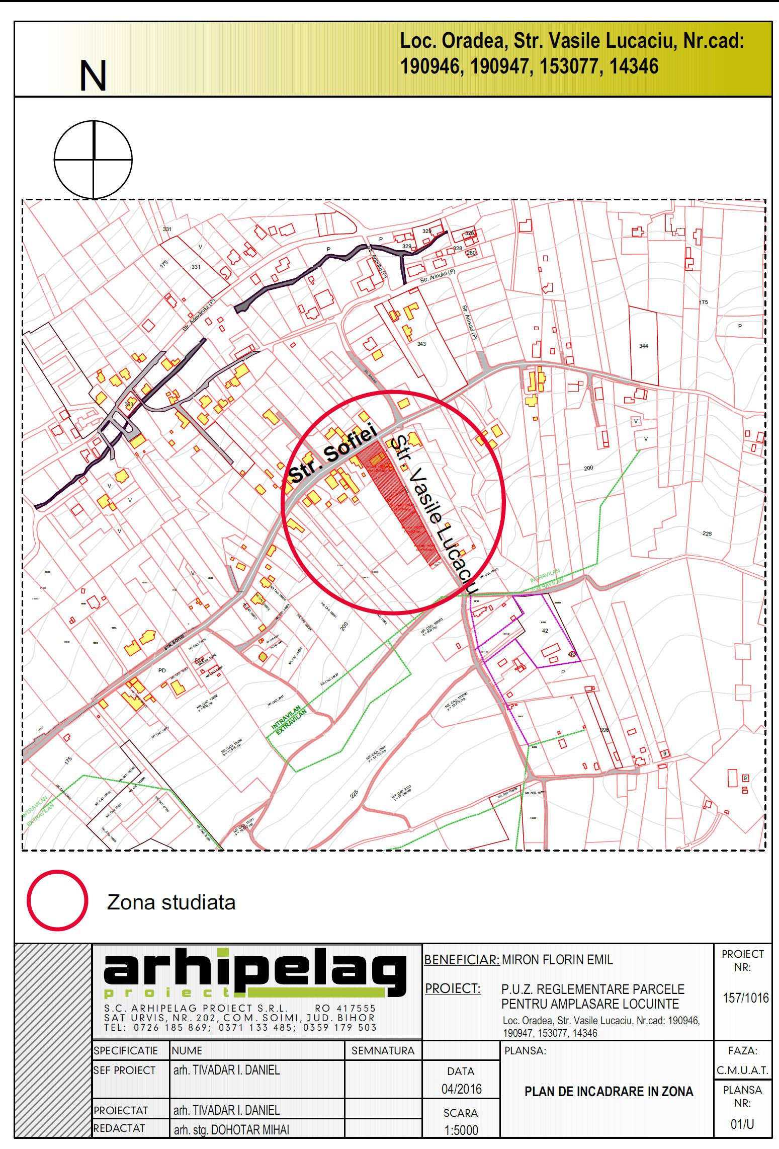 In consecinta documentatia „PUZ – Reglementare parcele pentru amplasare locuinte, zona str.Sofiei – str.Vasile Lucaciu, nr.cad.190946, 190947, 153077, 14346 – Oradea”, va fi supusa aprobarii Consiliului Local al municipiului Oradea, in forma avizata prin aviz CMUAT nr.771/20.04.2016, corelat cu avizele solicitate prin Certificatul de urbanism nr. 1450/04.04.2016