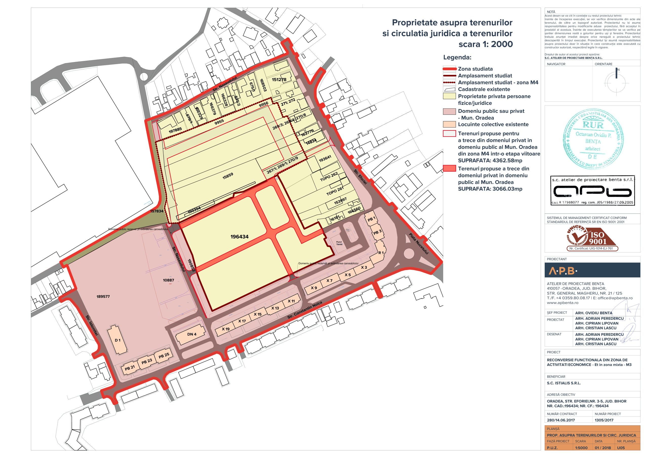 privind elaborarea PUZ – Reconversie functionala din zona de activitati economice tertiare in zona mixta M3, str. Eforiei nr.cad.196434 Oradea