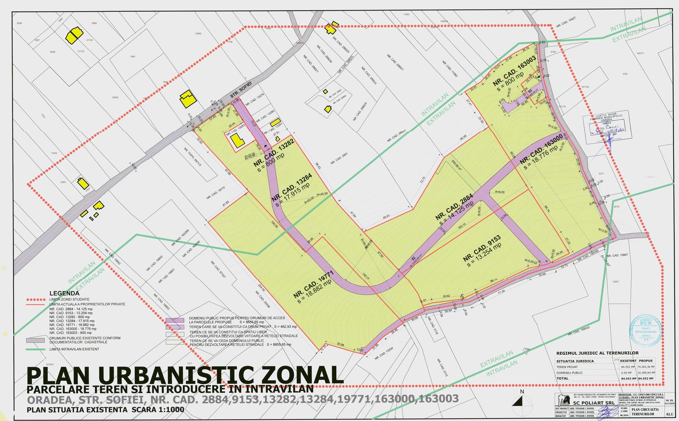 RAPORT DE SPECIALITATE privind aprobarea Planului Urbanistic Zonal – Extindere intravilan si parcelare teren pentru amplasare locuinte familiale S+P+E(M) si dotari complementare, str. Sofiei f.n., nr.cad. 2884, 9153, 13282, 13284, 19771, 163000 si 163003